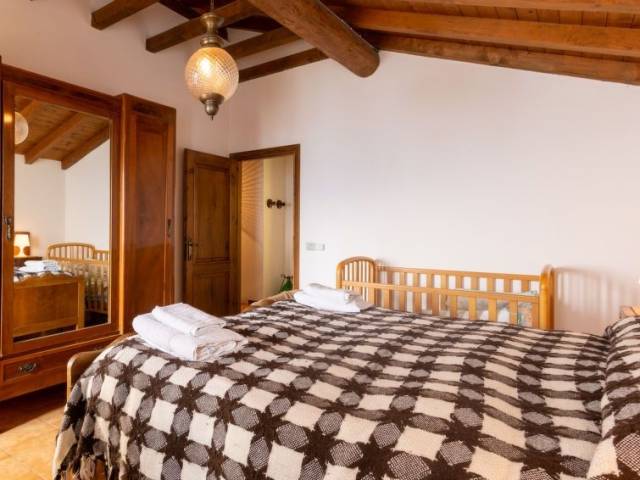 Casa 3 estancias 90 m2 en 2 plantas, orientación sur. Con mobiliario rústico y con mucha madera: salón-comedor con chimenea, mesa de comedor y TV satélite. Salida a la terraza. Cocina abierta (1 fogón, lavavajillas, 3 fuegos, tostadora, microondas, cafetera eléctrica). WC separado. Planta superior: 1 dorm. con 1 cama de matrimonio (160 cm). 1 dorm. con 2 camas y 1 x 2 literas. Salida al balcón. Ducha/WC. Calefacción gasóleo. Balcón, terraza parcialmente cubierta, orientación sur, cenador. Barbacoa, tumbonas (2). El alojamiento dispone de: trona, cuna hasta 2 años. Internet (Wifi, gratis). 1 mascota / perro. CIR: 013249-CNI-00024