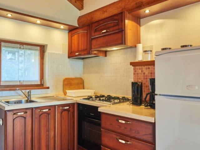 Casa 3 estancias 65 m2 en 2 plantas, orientación sur. Con mobiliario bonito y rústico: 1 dorm. con 1 cama de matrimonio (160 cm). 1 dorm. con 1 x 2 literas. Ducha/WC. Planta superior: (escalera empinada) salón-comedor abuhardillado grande con chimenea, mesa de comedor y TV satélite. Salida al balcón. Rincón-cocina (horno, 4 fuegos, tostadora, hervidor de agua eléctrico, congelador, cafetera eléctrica). Calefacción de gas. Balcón, orientación este y orientación sur, terraza-jardín, césped. Muebles de balcón, barbacoa (portátil). Vista panorámica muy bonita al lago y a las montañas. El alojamiento dispone de: lavadora, plancha, trona, cuna. Internet (Wifi, gratis). Permitido máximo 2 mascotas / perros. CIR: 013178-CNI-00001