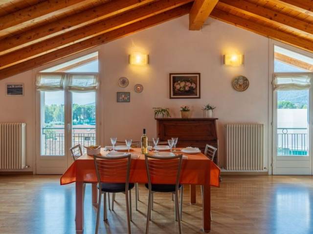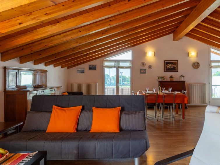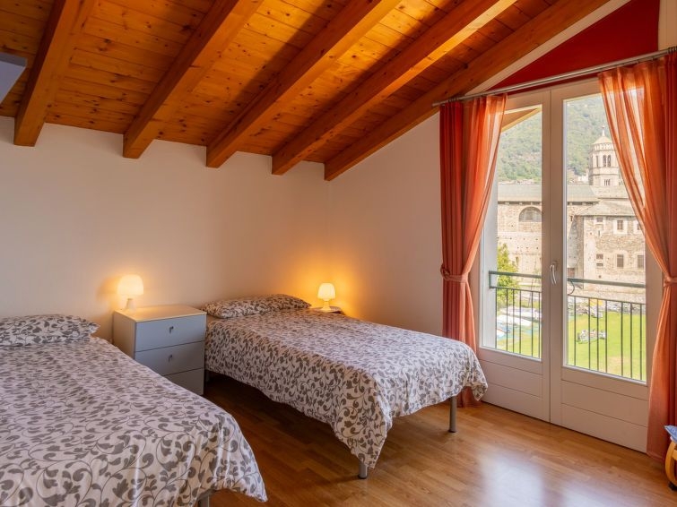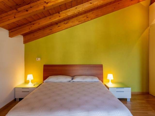 Apartamento de 3 estancias 100 m2, en el ático. Luminoso, con mobiliario bonito y agradable: salón-dormitorio con 1 sofá-cama doble, mesa de comedor y TV satélite. Salida al balcón. 1 dorm. doble. 1 dorm. con 2 camas. Cocina abierta (horno, lavavajillas, 5 fuegos, tostadora, hervidor de agua eléctrico, microondas, congelador, cafetera eléctrica). Baño/WC, ducha/WC. Calefacción de gas. Calefacción disponible desde el 15.10. al 15.04. Suelo de parquet. Balcón pequeño. Muebles de balcón, trastero. Vista panorámica espléndida al lago, a las montañas y Monte Legnone (2609 m). El alojamiento dispone de: lavadora, plancha, trona, cuna hasta 2 años. Internet (Wifi, gratis). A tener en cuenta: apartamento para no fumadores. CIR: 013249-CNI-00071