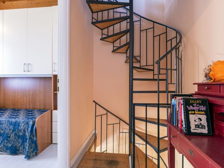 Casa 4 estancias 65 m2 en 3 plantas, orientación sur. Con mobiliario bonito: salón-comedor con mesa de comedor, TV satélite y CD. Salida al jardín. Cocina abierta (4 fogones, horno, lavavajillas, 4 fuegos, tostadora, hervidor de agua eléctrico, congelador, cafetera eléctrica). Ducha/WC. Planta superior: 1 dorm. con 1 cama de matrimonio (160 cm). Salida al balcón. 1 dorm., pequeño con 1 cama y 1 cama-nido. Planta superior 2: (escalera de caracol) 1 dorm., abierto con 1 cama de matrimonio (160 cm), ducha/WC y TV satélite. Salida al balcón. Calefacción de gas. Suelo de madera, suelo de piedra natural. 2 balcones, orientación sur, terraza. Muebles de terraza, barbacoa (portátil), tumbonas (6), trastero. El alojamiento dispone de: lavadora, plancha, trona, cuna hasta 2 años. Internet (Wifi, gratis). Garaje (2 Coches), altura 190 cm. A tener en cuenta: casa para no fumadores. Permitido máximo 1 mascota / perro. CIR: 013249-CNI-00026