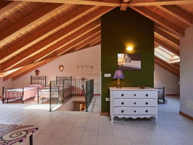 Casa 4 estancias 180 m2 en 2 plantas, orientación suroeste. Luminoso, con mobiliario de buen gusto: salón con chimenea y TV satélite. Salida al balcón. 1 dorm. con 1 cama de matrimonio (160 cm). Habitación de paso con 1 cama de matrimonio (160 cm). Cocina abierta (horno, lavavajillas, Estufa de gas, 4 fuegos, tostadora, microondas, congelador, cafetera eléctrica) con mesa de comedor. Salida al balcón. Ducha/WC. Buhardilla: habitación de paso abuhardillada, abierta con tragaluz con 2 camas y 1 cama de matrimonio (160 cm), ducha/WC. Calefacción de gas. Balcón 10 m2, 2 terrazas. Muebles de terraza, muebles de balcón, barbacoa (portátil), tumbonas (4). El alojamiento dispone de: lavadora, trona, cuna hasta 2 años. Internet (Wifi, gratis). Si el número de personas que ocupan la casa vacacional fuera inferior al máximo posible, una de las plantas no estará disponible. CIR: 012092-CNI-00014