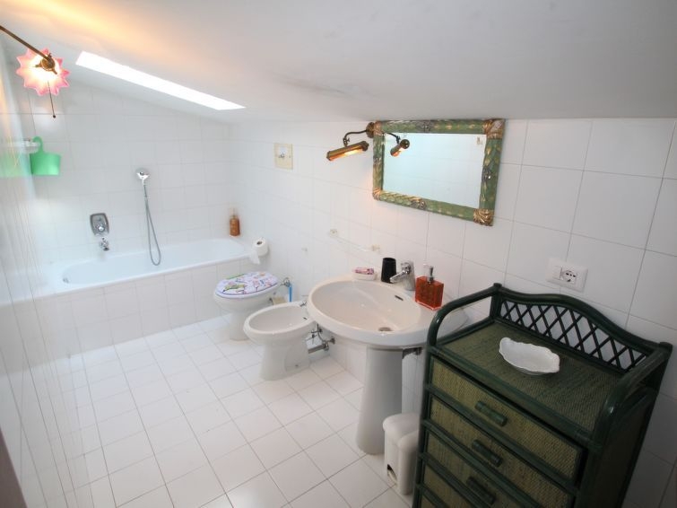Casa 3 estancias 120 m2 en 2 plantas. Con mobiliario funcional: salón-comedor grande con mesa de comedor, TV satélite, DVD, colección de DVD a disposición y aire acondicionado. Salida a la terraza-jardín. 1 dorm. con 2 camas (80 cm). Cocina (lavavajillas, 4 fuegos, tostadora, hervidor de agua eléctrico, microondas, congelador, cafetera eléctrica) con mesa de comedor. Media bañera/bidet/WC. Planta superior: 1 dorm. doble con aire acondicionado y ventilador. Baño/bidet/WC. Calefacción eléctrica. Suelo de parquet. Terraza-jardín cubierta. Muebles de terraza. El alojamiento dispone de: lavadora, mosquitera, cuna hasta 2 años. Internet (Wifi, gratis). Permitido máximo 2 mascotas / perros. CIR:012120-CIM-00002