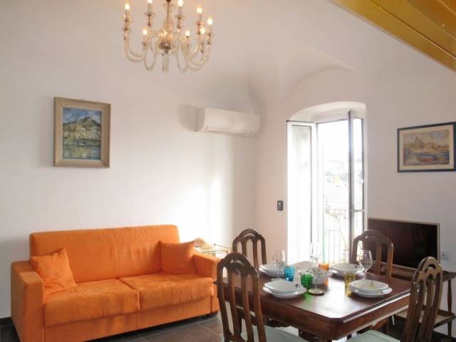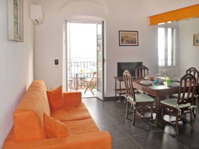 "Baia del Sole (IMP142)", apartamento de 2 estancias 60 m2 en el 2° piso. Reformado en 2015, con mobiliario agradable: salón-dormitorio con 1 sofá-cama doble (160 cm), mesa de comedor y TV satélite. Salida al balcón. 1 dorm., en 2 niveles con Vestidor con 1 cama de matrimonio (160 cm). Cocina abierta (horno, lavavajillas, 4 fuegos, tostadora, hervidor de agua eléctrico, cafetera eléctrica). Ducha/WC. Calefacción eléctrica, aire acondicionado. Balcón. Muebles de balcón. Vista espléndida al mar, al puerto y al pueblo. El alojamiento dispone de: lavadora, plancha, trona, cuna. Internet (Wifi, gratis). A tener en cuenta: apartamento para no fumadores. Permitido máximo 1 mascota / perro. CITRA: 008031-LT-0013