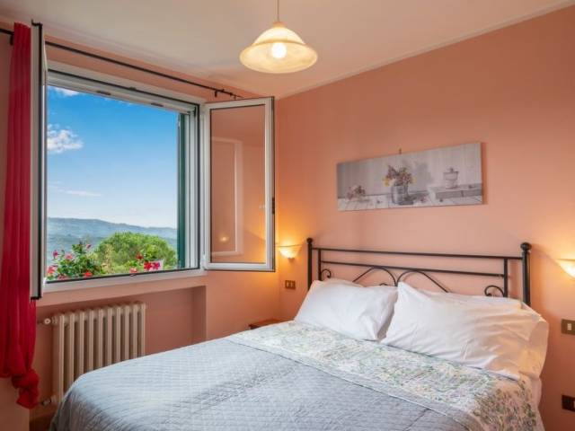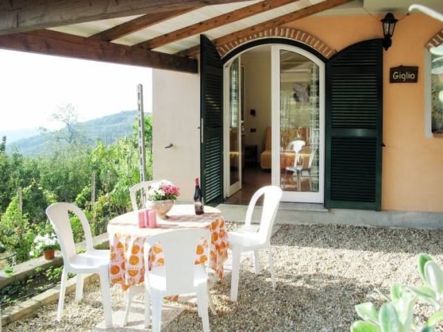 Agroturismo "San Giuseppe", bonita, agradable de 2 plantas, individual, rodead árboles y prados. 2 casas en la residencia. 7 apartamentos en la residencia. Por encima Valloria, a 100 m del centro de Valloria, a 14 km del centro de Imperia, a 33 km del centro de San Remo, lugar aislado, elevado en una colina, a 14 km del mar, en el campo. Comunitario: jardín en diferentes niveles grande, cuidado (no está vallado) con flores y árboles, terreno con hierba, piscina (6 x 5 m, Disponible por temporada: 01.Abr. - 26.Nov.). Ducha exterior, casita de piscina con cocina, tenis, iluminado, tenis de mesa, terraza-jardín, terraza, muebles de jardín, barbacoa, mantenimiento de la piscina a través del propietario/jardinero. En el complejo: sala de desayuno, sala de descanso, Wifi, bañera de hidromasaje (extra). Tenis de mesa (todo incluido), futbolín, sala para guardar bicicleta, solarium, lavadora (uso comunitario), alquiler de bicicletas. A disposición: bicicletas (4). Servicio a domicilio de panecillos y servicio a domicilio de bebidas posibilidad: desayuno y media pensión (extra). Trastero a disposición. Acceso muy brusco, estrecho durante 2.5 km hasta la casa. 100 m acceso por escaleras (64 escalones) hasta la casa. Aparcamiento, posibilidad de aparcamiento 100 m. Tienda 4 km, supermercado 14 km, centro comercial 14 km, restaurante, bar 200 m, panadería 4 km, internet café, alquiler de bicicletas, parada de autobús 200 m, estación de tren "Imperia Oneglia" 19 km, playa de arena "Imperia/Porto Maurizio" 14 km, lago "Laghetti di Lecchiore" 2 km. Puerto para yates 19 km, tenis 200 m, centro ecuestre 7 km, rutas de senderismo desde la casa 10 m, parque infantil 4 km. Atracciones en los alrededores: E-Mountain-bikes 100 m, 160 bemalte Türen im Dorf 100 m. Zona de senderismo Monte Faudo 10 km. A tener en cuenta: coche recomendable. Equipamiento para bebés (incluido). Grupos de jóvenes sólo bajo petición. Adecuado para eventos. Posibilidad de reservar cursos de cocina bajo petición. Bajo petición: transfer desde el aeropuerto a la vivienda de vacaciones. Venta local de productos de granja. Carga y descarga de equipaje posible en la casa de vacaciones. "Giglio (VLO205)", apartamento de 2 estancias 40 m2, en la planta baja. Con mobiliario bonito: salón-dormitorio con 1 sofá-cama doble (160 cm), mesa de comedor y TV satélite. Salida a la terraza. 1 dorm. con 1 cama doble (160 cm). Cocina abierta (horno, lavavajillas, 4 fuegos, tostadora, hervidor de agua eléctrico, cafetera eléctrica). Ducha/WC. Calefacción de gas, aire acondicionado. Terraza 15 m2, cubierta, orientación sur. Muebles de terraza. Vista panorámica espléndida al mar, a las montañas y al valle. El alojamiento dispone de: mosquitera, trona, cuna, secador de pelo. Internet (Wifi, gratis). A tener en cuenta: entrada privada. CITR: 008047-AGR-0005