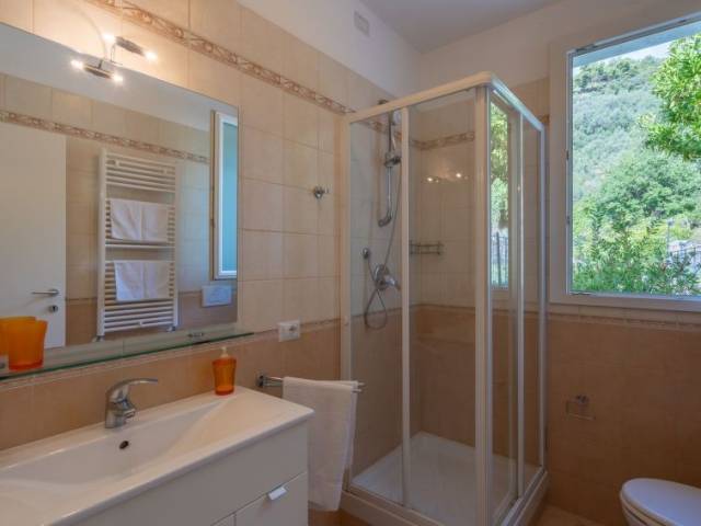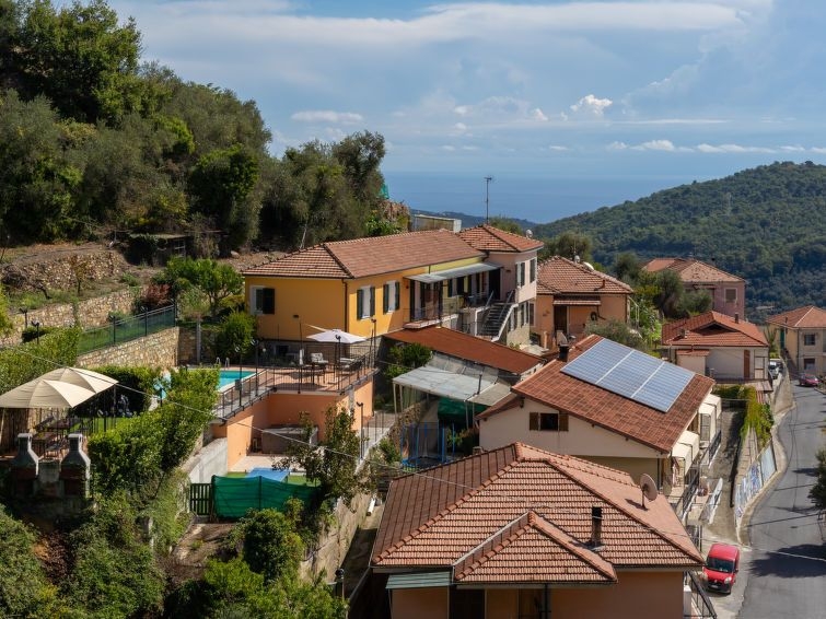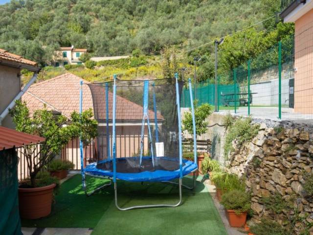 Residencia "Agriturismo Ca' di Nonni", 400 m s.n. m., idónea para niños, bonita de 2 plantas, rodeada de árboles y viñedos. 4 apartamentos en la residencia. A 100 m del centro de Pietrabruna, en la periferia, a 10 km del centro de San Lorenzo al Mare, a 16 km del centro de Imperia, lugar elevado en una pendiente, a 9.5 km del mar, en el campo. Comunitario: jardín en diferentes niveles bonito, cuidado 1'000 m2 con césped y plantas, terreno con hierba, piscina (10 x 5 m, 120 cm de profundidad, Disponible por temporada: 01.May. - 01.Nov.). Ducha exterior, tenis de mesa, terraza-jardín, cenador, muebles de jardín, barbacoa, parque infantil (tobogán, columpio), mantenimiento de la piscina a través del propietario/jardinero. En el complejo: sala de descanso con TV, gimnasio, futbolín, sala para guardar bicicleta, solarium, lavadora (uso comunitario), alquiler de bicicletas. Acceso empinado, estrecho durante 20 m. Acceso por escaleras hasta la casa. Posibilidad de aparcamiento 50 m en la calle. Tienda 200 m, supermercado 10 km, café 200 m, parada de autobús 150 m, playa de arena "San Lorenzo al Mare" 10 km, lago "Laghetti Torre Paponi" 5 km. Grupos de jóvenes sólo bajo petición. A tener en cuenta: carga y descarga de equipaje posible en la casa de vacaciones. Una parte de la casa está cerrada e inocupada.