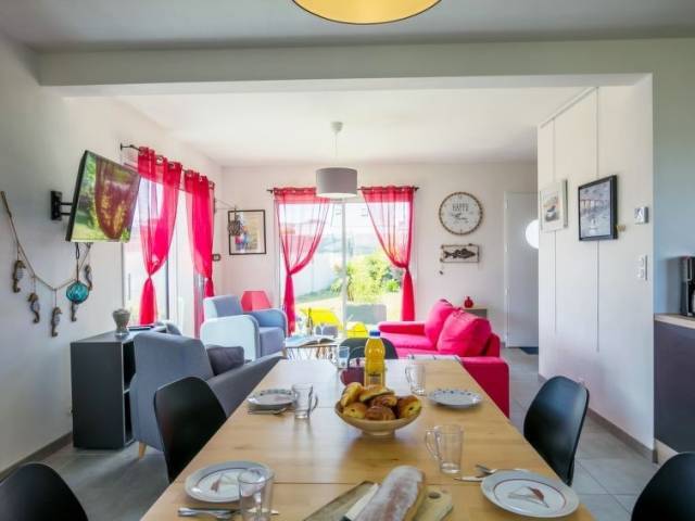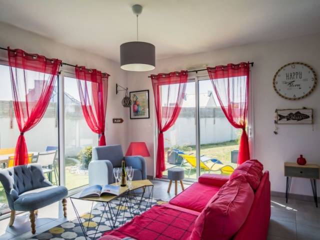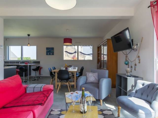 Casa unifamiliar "L'Hippocampe", moderna del año 2018. En el barrio de Pors Guen, a 4 km del centro de Plouescat, a 9 km del centro de Cléder, a 18 km del centro de Lesneven, a 150 m del mar, a 200 m de la playa. Privado: terreno 500 m2 (vallada) con césped y plantas. Trastero a disposición. Aparcamiento (para 2 coches, número limitado). Aparcamiento cubierto. Tienda 4 km, supermercado 3.6 km, restaurante 100 m, panadería 4 km, playa de arena "Plage de Pors Meur" 700 m, piscina termal "Thalasso Roscoff" 23 km. Campo de golf (9 hoyos) 6 km, escuela de surf, escuela de vela 240 m, tenis 1 km, minigolf 2 km, rutas de senderismo desde la casa 150 m. Atracciones en los alrededores: Char à voile, baie du Kernic 1.4 km, Reserve ornithologique Dunes de Keremma 10 km, Châteáu de Kerjean 14 km, Roscoff et Jardin Exotique, Île de Batz 23 km, Morlaix 36 km, Océanopolis Brest 57 km. Zona de senderismo GR34 150 m. "L'Hippocampe (PLC252)", casa 5 estancias 108 m2 en 2 plantas. Luminoso, con mobiliario de buen gusto: salón-comedor con mesa de comedor y TV satélite. Salida a la terraza. 1 dorm. con 1 cama de matrimonio (140 cm, 190 cm de longitud), ducha. Cocina abierta (horno, lavavajillas, 3 placas de vitrocerámica, tostadora, hervidor de agua eléctrico, microondas, congelador, cafetera eléctrica) con pequena mesa de comedor. WC separado. Planta superior: 1 dorm., abuhardillado con 1 cama de matrimonio (140 cm, 190 cm de longitud). 1 dorm., abuhardillado con 1 cama de matrimonio (160 cm, 200 cm de longitud). 1 dorm., abuhardillado con 2 camas (90 cm, 190 cm de longitud). Baño, WC separado, doble lavabo. Calefacción eléctrica. 2 terrazas. Muebles de terraza, barbacoa (portátil), tumbonas (8). El alojamiento dispone de: lavadora, trona, cuna. Internet (Wifi, gratis). A tener en cuenta: casa para no fumadores. Permitido máximo 1 mascota / perro. Detector de humo. Si el número de personas que ocupan la casa vacacional fuera inferior al máximo posible, no todos los dormitorios estarán disponibles. 29185 000049 CA