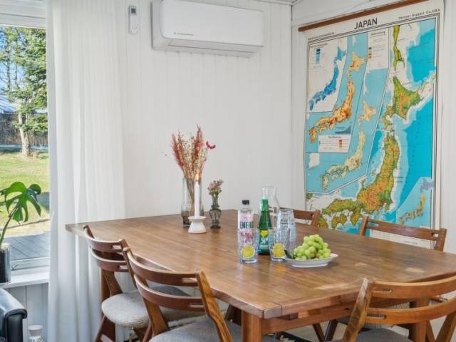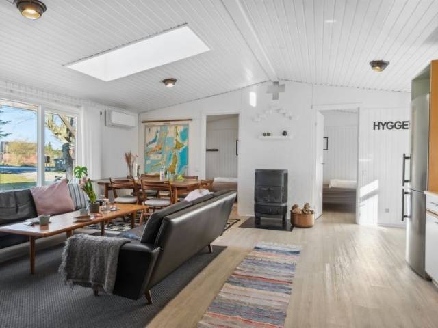 "Elmira" - 555m from the sea in NE Jutland", casa 3 estancias 76 m2. Vivienda adecuada para 6 adultos. Salón con TV. 1 dorm. con 1 cama doble. 1 dorm. con 1 cama doble. 1 dorm. con 1 cama doble. Cocina (horno, lavavajillas, 4 placas de vitrocerámica, microondas, congelador). Ducha/WC. El alojamiento dispone de: trona. Internet (Wifi). A tener en cuenta: apartamento para no fumadores. Permitido máximo 2 mascotas / perros.