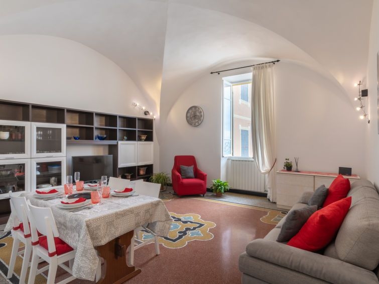 "Boggiano", apartamento de 3 estancias 90 m2 en el 1° piso. Con mobiliario moderno y de buen gusto: planta superior: (escalera empinada) salón con mesa de comedor y TV. 1 dorm. con 1 cama doble (160 cm). 1 dorm. con 2 camas-nido (2 pers. 2 x 80 cm). Pequeña cocina abierta (horno, lavavajillas, 2 placas de vitrocerámica, 2 fuegos, tostadora, hervidor de agua eléctrico, microondas, congelador, cafetera eléctrica). Baño/bidet/WC. Calefacción de gas. Suelo de piedra natural. Vista al mar. El alojamiento dispone de: lavadora, plancha, trona, cuna. Internet (Wifi, gratis). A tener en cuenta: apartamento para no fumadores. Permitido máximo 1 mascota / perro. La disponibilidad de las camas es flexible. Aunque haya más camas disponibles que la ocupación máxima, esta no se puede exceder. CITRA: 009001-LT-0207
