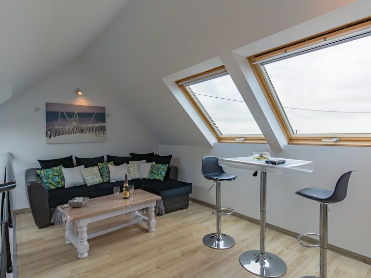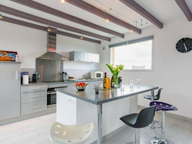 "Ty Ar Mor (CED228)", casa 4 estancias 110 m2 en 2 plantas. Luminoso, con mobiliario bonito: comedor con chimenea (sólo con función decorativa), mesa de comedor. Salida al jardín, a la terraza. 1 dorm. con 1 cama de matrimonio (160 cm, 200 cm de longitud). Salida al jardín. Cocina abierta (horno, lavavajillas, 4 Placas de inducción, tostadora, hervidor de agua eléctrico, microondas, congelador, cafetera eléctrica) con mesa de comedor. Ducha, WC separado. Calefacción eléctrica. Planta superior: salón abuhardillado con TV satélite (pantalla plana). 1 dorm., abuhardillado con 1 cama de matrimonio (140 cm, 190 cm de longitud). (escalera empinada) 1 dorm., abuhardillado altura de techo 190 cm con 2 camas (90 cm, 190 cm de longitud). Suelo de parquet. Terraza, orientación sur. Muebles de terraza, barbacoa (portátil), tumbonas (6). Vista al mar. El alojamiento dispone de: lavadora, secadora, plancha, trona, cuna. Internet (Wifi, gratis). A tener en cuenta: casa para no fumadores. Detector de humo. 29030 000051 DN