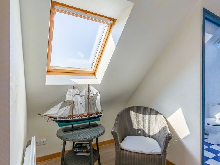 "L’Hermine (PLC228)", casa 4 estancias 105 m2 en 2 plantas. Luminoso, con mobiliario bonito: salón-comedor con chimenea, mesa de comedor, TV satélite y canales internacionales. Salida a la terraza. Cocina abierta (horno, lavavajillas, 4 fuegos, tostadora, hervidor de agua eléctrico, microondas, congelador, cafetera eléctrica) con pequena mesa de comedor. Ducha/WC. Planta superior: 1 dorm., abuhardillado con 1 cama (90 cm, 190 cm de longitud). 2 dorm., abuhardillados, cada habitación con 2 camas (90 cm, 190 cm de longitud). Baño, WC separado. Calefacción eléctrica. Suelo de parquet. Terraza, orientación sur. Muebles de terraza, barbacoa (portátil), tumbonas (2). El alojamiento dispone de: lavadora, plancha. Internet (Wifi). A tener en cuenta: casa para no fumadores. Permitido máximo 1 mascota / perro. Detector de humo. 29185 000079 G9