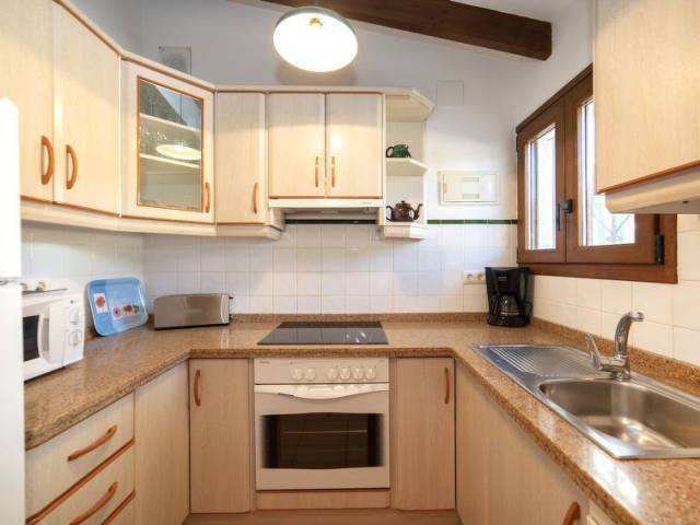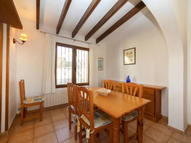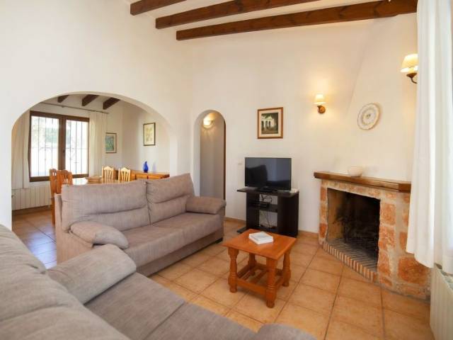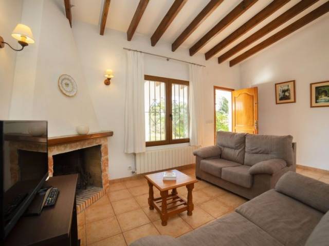 "Benimeit (MRA403)", casa 3 estancias 70 m2. Luminoso, con mobiliario agradable: salón-comedor con chimenea, mesa de comedor y TV satélite. Salida a la terraza. 1 dorm. con 1 cama de matrimonio (150 cm, 190 cm de longitud), aire acondicionado y bomba de calor, caliente. 1 dorm. con 2 camas (90 cm, 190 cm de longitud), aire acondicionado y bomba de calor, caliente. Cocina (horno, lavavajillas, 4 placas de vitrocerámica, tostadora, microondas, congelador, cafetera eléctrica). Ducha/WC. Calefacción de gas. Terraza cubierta, cenador. Muebles de terraza, barbacoa, tumbonas (4). Vista al jardín. El alojamiento dispone de: lavadora, plancha, cuna. Internet (Wifi, gratis). A tener en cuenta: adecuado para familias. Apartamento para no fumadores. Permitido máximo 1 mascota / perro. Incluido Energía consumo máximo 150Km semanal. AT-413750-A