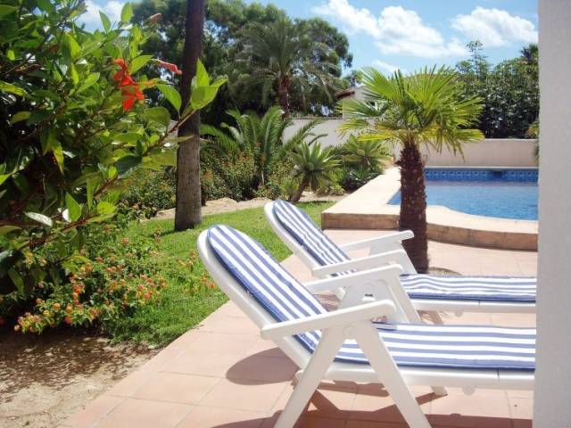 Casa unifamiliar "Benimeit". En el barrio de Benimeit, a 2.5 km del centro de Moraira, a 2.5 km del mar. Privado: terreno 1'200 m2, jardín en diferentes niveles con césped y plantas, piscina (8 x 4 m, Disponible por temporada: 01.Ene. - 31.Dic.). Aparcamiento en el mismo terreno. Tienda 500 m, supermercado 3.5 km, restaurante 500 m, playa de arena "Playa de Moraira" 3.6 km, cala para bañarse 2.5 km. Puerto deportivo 3.1 km, puerto para yates 3.1 km, escuela de surf 10.2 km, escuela de vela 1.0 km. Atracciones en los alrededores: Torre del Cap D'Or 4.3 km, Peñon de Ifach 14.1 km, Mirador Cantal de Gener 6.7 km. A tener en cuenta: coche recomendable. Equipamiento para bebés a demanda (incluido). El propietario no acepta grupos de adolescentes/jóvenes.