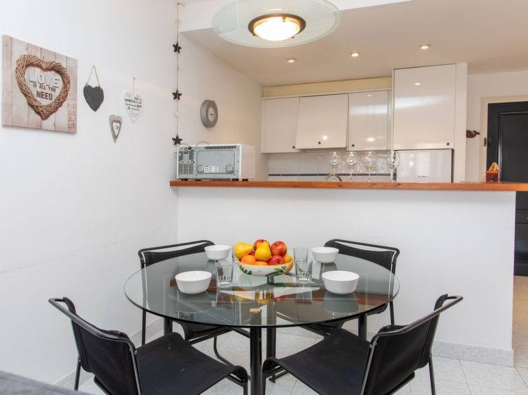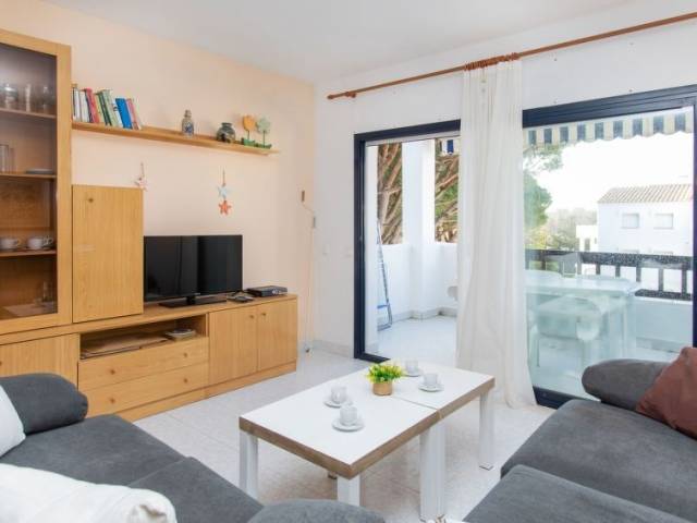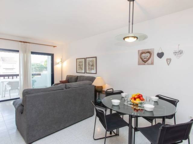 "Nautic Golf C III", apartamento de 3 estancias 65 m2. Con mobiliario funcional: salón-comedor con mesa de comedor, TV satélite y TV digital. Salida a la terraza. 1 dorm. con 1 cama de matrimonio (145 cm, 190 cm de longitud). 1 dorm. con 1 cama-nido (2 pers. 2 x 90 cm, 190 cm de longitud). Cocina abierta (horno, lavavajillas, 3 placas de vitrocerámica, microondas). Baño/WC. Calentador (100 litros). Ningún tipo de calefacción. Terraza. Muebles de terraza. Vista a la piscina. El alojamiento dispone de: lavadora, plancha, trona, cuna, secador de pelo. Internet (Wifi, gratis). Plaza de aparcamiento n. C301 Exterior. A tener en cuenta: TV solamente ES. HUTG-003334