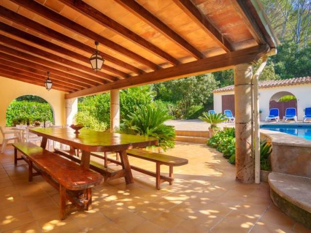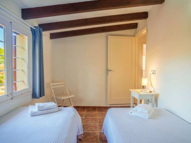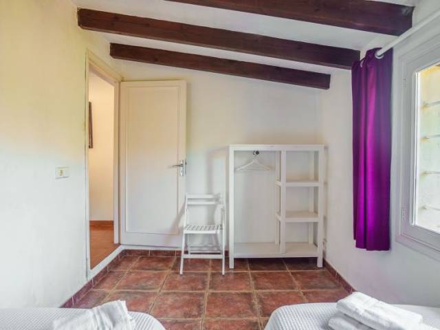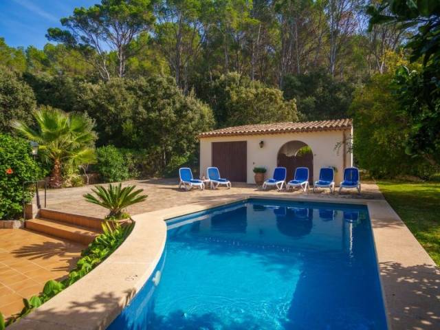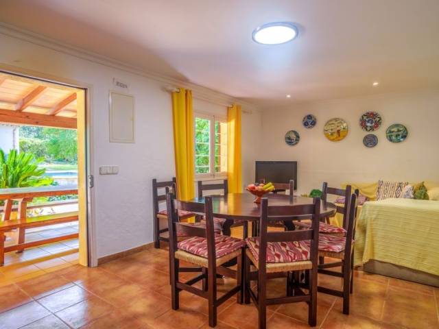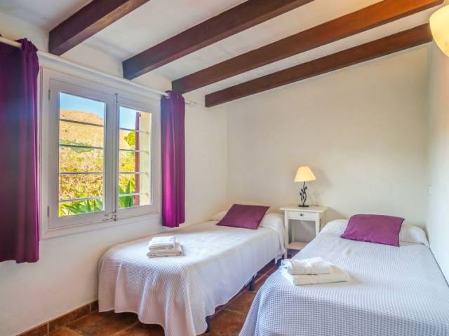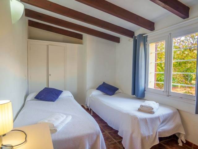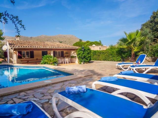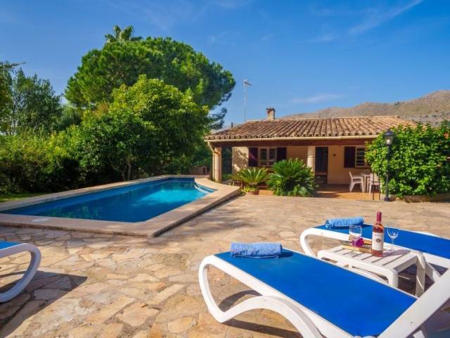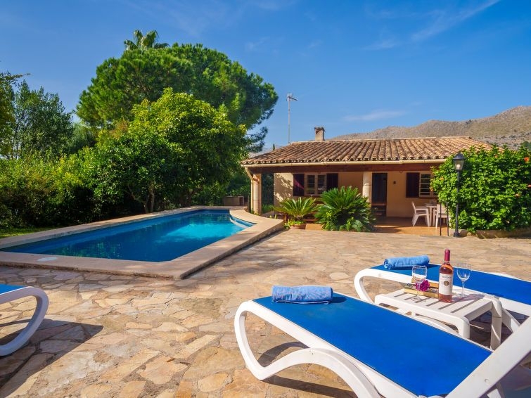 Casa de campo "Ullastro (POL220)", individual, rodeada de árboles. A 5 km del centro de Pollensa, a 10 km del centro de Alcúdia, a 2.5 km del centro de Puerto Pollensa, a 2.8 km del mar. Privado: terreno 2'500 m2 (vallada) con césped y plantas, terreno con árboles frutales, piscina en forma de riñon (6 x 3 m, Disponible por temporada: 01.Ene. - 31.Dic.). Ducha/WC en zona de piscina, aparcamiento en el mismo terreno. Tienda 1 km, playa de arena "Puerto Pollensa" 2.8 km. A tener en cuenta: coche recomendable. Grupos de jóvenes sólo bajo petición. "Ullastro (POL220)", casa 5 estancias 80 m2. Con mobiliario funcional y rústico: salón-comedor con mesa de comedor, TV satélite, TV digital y DVD. 1 dorm. con 2 camas y baño/WC. 3 dorm., cada habitación con 2 camas. Cocina abierta (horno, lavavajillas, 3 fuegos, tostadora, microondas, congelador, cafetera eléctrica). Baño/WC. Ningún tipo de calefacción Calefacción no en todas las estaciones. Terraza 30 m2, cubierta. Muebles de terraza, barbacoa, tumbonas (6). El alojamiento dispone de: lavadora, caja fuerte, trona, cuna hasta 2 años (extra). Internet (Wifi, gratis). A tener en cuenta: casa para no fumadores. Climatización con función de refrigeración / calefacción en el pasillo. VTV0551BAL