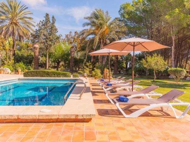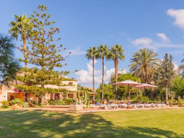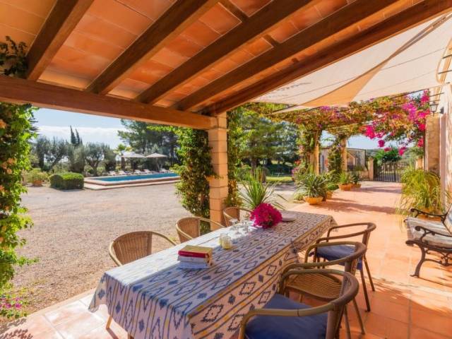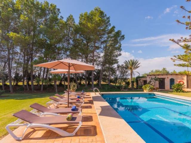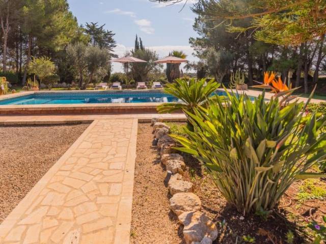 Finca "Ses Sitjoles", individual, rodeada de campos. A 6.5 km del centro de Campos, a 10 km del centro de Sa Rápita, a 36 km del centro de Palma, a 10 km del mar. Privado: terreno 2'500 m2 (vallada), jardín bonito con césped y plantas, piscina (11 x 6 m, 100 - 200 cm de profundidad, Disponible por temporada: 01.Ene. - 31.Dic.). Aparcamiento en el mismo terreno. Tienda 7 km, restaurante 7 km, playa de arena "Es Trenc" 10 km. A tener en cuenta: coche recomendable. Primera planta cerrada y no ocupada. Animales en los alrededores. Por favor tenga en cuenta que se debe pagar la tasa turística a la agencia en el destino antes de viajar (por transferencia bancaria o tarjeta de crédito). La agencia en el destino se comunicará con usted al respecto antes de su viaje (por e-mail o por teléfono).