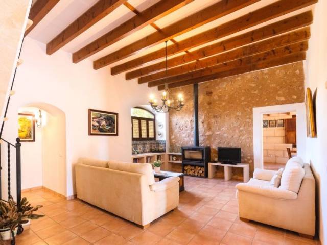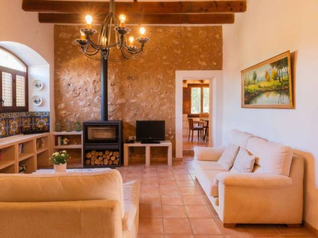 "Ses Sitjoles (CMP175)", casa 5 estancias 140 m2. Con mobiliario rústico y agradable: salón con chiminea nórdica y TV satélite. 1 dorm. con 2 camas. 1 dorm. con 1 cama de matrimonio (150 cm), ducha/WC. Salida al jardín. 1 dorm. con 1 cama de matrimonio (135 cm, 185 cm de longitud). Comedor con mesa de comedor. Cocina abierta (horno, lavavajillas, 4 placas de vitrocerámica, tostadora, hervidor de agua eléctrico, microondas, congelador, cafetera eléctrica). Ducha/WC. 2 terrazas parcialmente cubierta. Muebles de terraza, barbacoa (portátil), tumbonas. El alojamiento dispone de: lavadora, plancha, trona, cuna. Internet (Wifi, gratis). A tener en cuenta: casa para no fumadores. Detector de humo, extintores. VTV1283