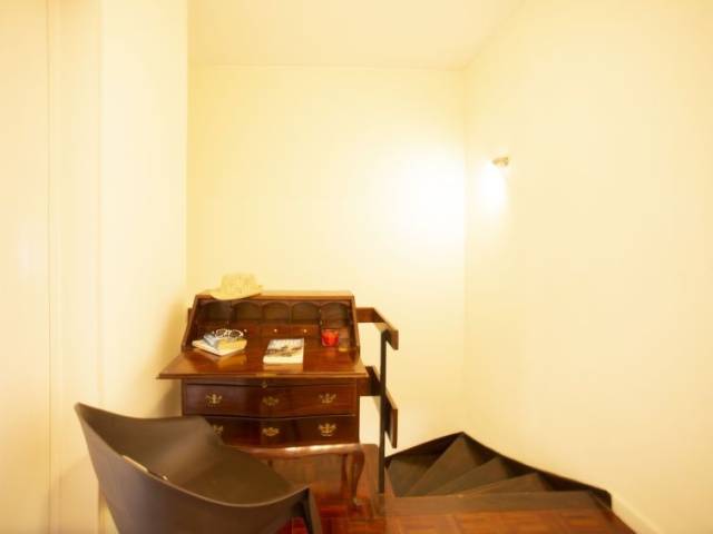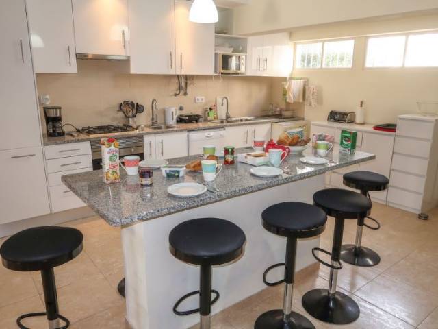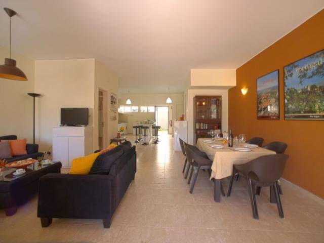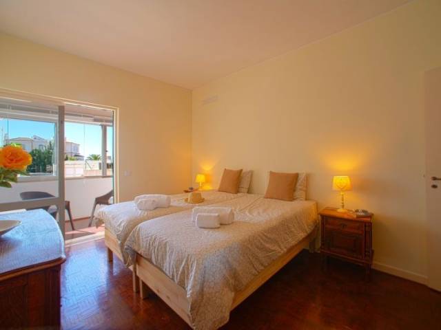 Casa de apartamentos "Mira Rocha", de 6 plantas. 25 apartamentos en la residencia. En el barrio de Praia da Rocha, a 3 km del centro de Portimão, a 23 km del centro de Lagos, a 35 km del centro de Albufeira, a 150 m del mar. Comunitario: terreno. En el inmueble: ascensor. Aparcamiento (número limitado), posibilidad de aparcamiento extra. Tienda 200 m, supermercado 3 km, restaurante, bar, café, zona peatonal 100 m, playa de arena "Praia da Rocha" 150 m, piscina cubierta 1.7 km. Puerto para yates 1.5 km, campo de golf (18 hoyos) 3.7 km. Atracciones en los alrededores: Casino 400 m. El propietario no acepta grupos de adolescentes/jóvenes. "Roy's place", apartamento de 4 estancias 113 m2 en 2 plantas, en la planta baja. Con mobiliario confortable y agradable: salón-comedor abierto con TV digital, radio, equipo de música, aire acondicionado y bomba de calor, caliente. Salida a la terraza. Cocina abierta (horno, lavavajillas, 4 fuegos, tostadora, hervidor de agua eléctrico, microondas, congelador, cafetera eléctrica) con barra americana. Ducha/WC. Calefacción no en todas las estaciones. Planta superior: con 1 cama de matrimonio (160 cm, 200 cm de longitud), aire acondicionado y bomba de calor, caliente. Salida al balcón acristalado. 1 dorm. con 1 cama doble (2 x 90 cm, 200 cm de longitud). Salida al balcón acristalado. 1 dorm. con 2 x 2 literas (90 cm, 190 cm de longitud). Salida al balcón acristalado. Baño/bidet/WC. Terraza grande 20 m2 parcialmente cubierta, 3 terrazas pequeñas cubierta. Muebles de terraza, barbacoa. El alojamiento dispone de: lavadora, plancha, trona, cuna, secador de pelo. Internet (Wifi, gratis). A tener en cuenta: apartamento que da al aparcamiento. Apartamento para no fumadores. 134299/AL