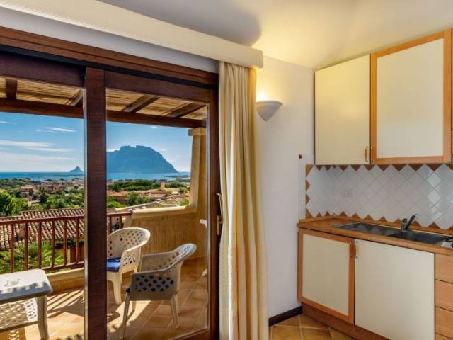 "Corbezzolo 9 - Vista Village", casa adosada 2 estancias 52 m2 en 2 plantas. Con mobiliario confortable y agradable: salón-comedor con balcón acristalado con 1 sofá-cama doble, TV satélite y pantalla plana. Rincón-cocina (4 fogones) con mesa de comedor. En planta inferior: 1 dorm. doble. Salida al balcón acristalado. Ducha/bidet/WC. Aire acondicionado (extra). Terraza cubierta. Muebles de terraza. Vista espléndida al mar. El alojamiento dispone de: caja fuerte, secador de pelo. Plaza de aparcamiento n. C9 (cubierto, vallada), ancho 230 cm. IUN:E2088