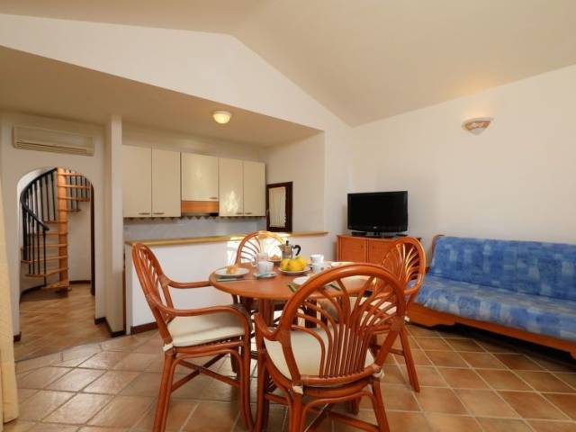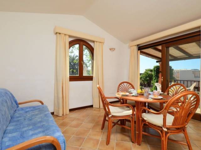 "Erica 22 - Vista Village", casa adosada 2 estancias 52 m2 en 2 plantas. Con mobiliario confortable y agradable: salón-comedor con balcón acristalado con 1 sofá-cama doble, mesa de comedor, TV satélite y pantalla plana. Cocina (4 fogones). Ducha/bidet/WC. Aire acondicionado (extra). Planta superior: (escalera de caracol) 1 dorm. doble. Terraza cubierta, jardín. Muebles de terraza. Vista a la piscina y al jardín. El alojamiento dispone de: caja fuerte, secador de pelo. Plaza de aparcamiento n. E22 (cubierto, vallada), ancho 230 cm. IUN:E2088