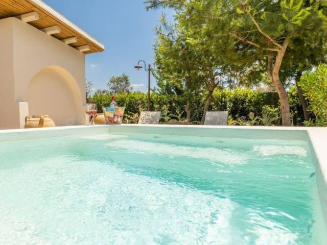 Torre Suda: Complejo vacacional "Tia", pequeño. 5 apartamentos en la residencia. A 1.5 km del centro de Racale, a 3 km del mar, a 3 km de la playa. Comunitario: jardín 2'000 m2 con plantas y árboles, piscina (18 x 7 m, 200 - 90 cm de profundidad, Disponible por temporada: 01.Abr. - 31.Oct.). Ducha exterior, mantenimiento de la piscina a través del propietario/jardinero. En el inmueble: solarium. Cambio de sábanas (suplemento extra). Cambio de toallas (suplemento extra). Posibilidad de limpieza (extra). Aparcamiento en el mismo terreno. Tienda 1.5 km, tienda de comestibles 1.5 km, supermercado 1.8 km, bar 1.5 km, estación de tren "Racale - Alliste" 2.5 km, playa de arena "Mancaversa" 5 km, playa rocosa "Torre Suda" 3 km. Atracciones en los alrededores: Spiaggia di Punta Pizzo 9 km, Gallipoli 17 km, Torre San Giovanni 10 km, Lecce, Otranto 55 km, Castro 35 km, Aeroporto del Salento (BDS) 100 km. A tener en cuenta: coche recomendable. "Tia Ranch III", casa pareada 2 estancias 50 m2, en la planta baja. Vivienda adecuada para 4 adultos. Con mobiliario funcional y confortable: salón-comedor con 2 camas y TV. 1 dorm. doble. Rincón-cocina (4 fogones, horno, congelador). Ducha/bidet/WC. Calefacción, aire acondicionado. Calefacción disponible desde el 01.11. al 31.03. Terraza-jardín parcialmente cubierta. Muebles de terraza, barbacoa. El alojamiento dispone de: lavadora, caja fuerte, mosquitera, cuna hasta 2 años, secador de pelo. Internet (Wifi, gratis). Plaza de aparcamiento n. 1. 1 mascota / perro. LE07506332000009648