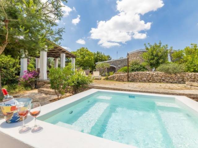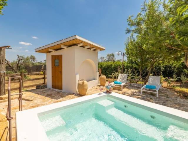 "Tia Pool Trullo", casa pareada 4 estancias 85 m2, en la planta baja. Vivienda adecuada para 6 adultos. Con mobiliario confortable y rústico: comedor con chimenea (sólo con función decorativa), TV. Salida al jardín. 1 dorm. doble. 2 dorm., cada habitación con 2 camas. Rincón-cocina (horno, lavavajillas, 4 fuegos, congelador). 2 ducha/bidet/WC, WC separado. Calefacción, aire acondicionado. Calefacción disponible desde el 01.11. al 31.03. Suelo de piedra natural. Terraza-jardín parcialmente cubierta. Muebles de terraza, barbacoa, tumbonas. El alojamiento dispone de: lavadora, caja fuerte, plancha, mosquitera, cuna hasta 2 años, secador de pelo. Internet (Wifi, gratis). Plaza de aparcamiento n. 1 (vallada) junto a la casa. Adecuado para familias. 1 mascota / perro. LE07506332000009648