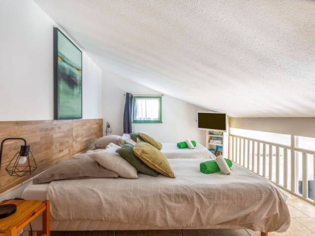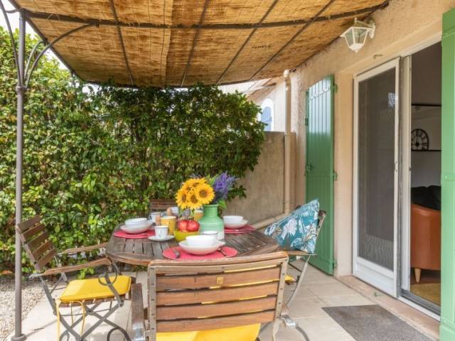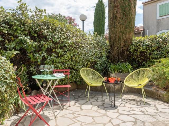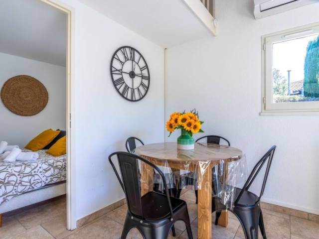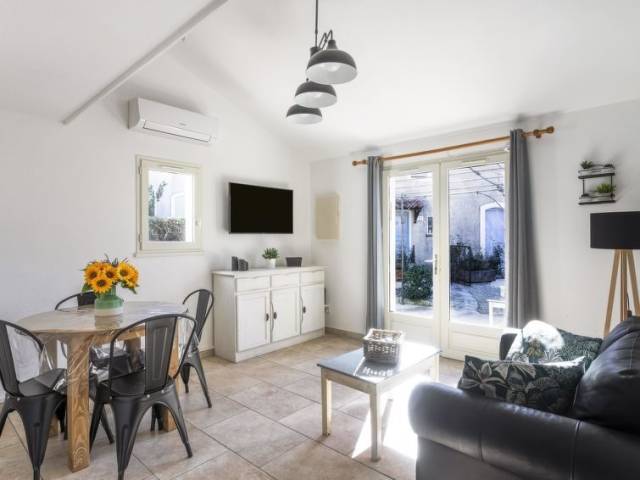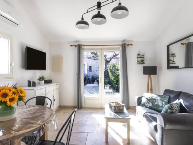 "Val d'Alpilles", casa adosada 3 estancias 40 m2 en 2 plantas. Con mobiliario funcional y bonito: salón-comedor con mesa de comedor, TV, calefacción eléctrica y aire acondicionado. Salida a la terraza, a la terraza-jardín. 1 dorm., pequeño con 1 cama de matrimonio (1 x 140 cm, 200 cm de longitud). Rincón-cocina (horno pequeño, horno, lavavajillas, 2 placas de vitrocerámica, tostadora, hervidor de agua eléctrico, congelador, cafetera eléctrica). Ducha/WC. Calefacción eléctrica. Planta superior: 1 dorm., abuhardillado, abierto con cortina con 2 camas (90 cm, 200 cm de longitud), TV y pantalla plana. Terraza 15 m2. Muebles de terraza, barbacoa eléctica. El alojamiento dispone de: lavadora. Internet (Wifi, gratis). Plaza de aparcamiento n. 103 (1 coche) a 50 m. A tener en cuenta: casa para no fumadores. Detector de humo. Oferta de un particular según el art. 155, IV del CGI. 130580000869P