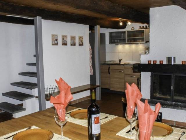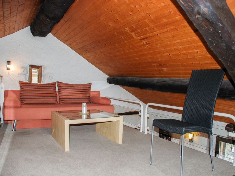 "Rustico Cristallo", casa 3 estancias en 3 plantas, orientación sur. Luminoso, parcialmente abuhardillada, con mobiliario confortable y de buen gusto: grande cocina-comedor (horno, 4 placas de vitrocerámica, cafetera eléctrica, Cápsulas de café (Caffitaly) extra, horno Raclette, set de Fondue (queso)) con chimenea, mesa de comedor y radio. Salida a la terraza-jardín. Ducha/WC. Calefacción eléctrica, calefacción de leña. Planta superior: salón con TV satélite y pantalla plana. Salida al jardín, a la terraza-jardín. 1 dorm. doble con 1 cama doble (2 x 80 cm, 200 cm de longitud). Salida a la terraza. Planta superior 2: (escalera empinada) altillo abuhardillado, abierto, altura de techo 80 - 100 cm con 2 camas (90 cm, 200 cm de longitud). Sala de estar. Terraza parcialmente cubierta, orientación sur, terraza-jardín. Muebles de terraza, barbacoa (portátil), tumbonas (2), rincón para sentarse. Vista panorámica bonita a las montañas, al paisaje y a la localidad. El alojamiento dispone de: trona, cuna hasta 2 años (extra), secador de pelo, leña (extra). Internet (Wifi, extra). A tener en cuenta: no adecuado para niños más pequeños de 6 años. Casa para no fumadores. Permitido máximo 1 mascota pequeña / perro. Extintores. NL-00001822