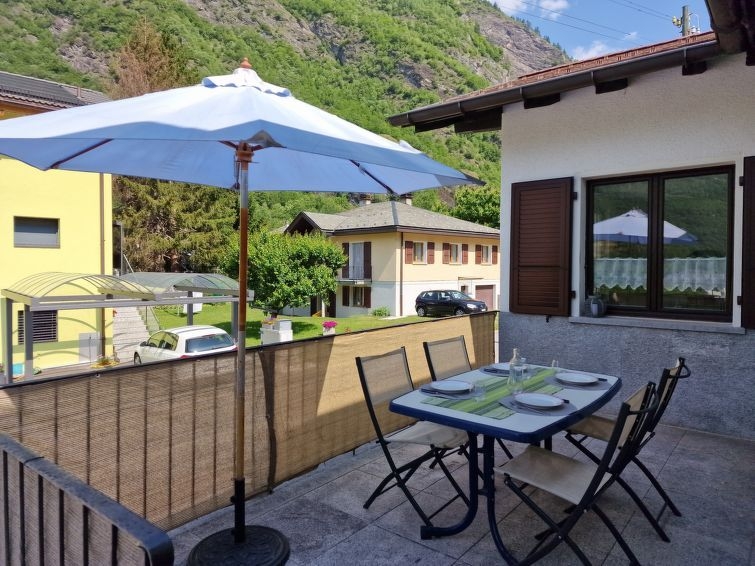 Olivone a 16 km de Malvaglia: Casa de dos viviendas "Ca' Virc", 900 m s.n. m., idónea para niños, sencilla. En el distrito Valle di Blenio, lugar soleado, en el campo. Privado: terraza. Acceso hasta la casa. Acceso por escaleras (14 escalones) hasta la casa. Aparcamiento junto a la casa. Supermercado 600 m, restaurante 700 m, panadería 600 m, alquiler de bicicletas 650 m, parada de autobús "Olivone Municipio" 550 m, estación de tren "Biasca" 23.5 km. Rutas de senderismo desde la casa 50 m, teleférico 17.5 km, pistas de esquí 6 km, alquiler de esquís 650 m, pista de trineo 15.5 km, pista de esquí de fondo 9.5 km, pista de hielo 9.5 km. Atracciones en los alrededores: Museo Valle di Blenio, Chiesa Negrentino, Bellinzona Castelli UNESCO, Mercato Bellinzona, Castello di Serravalle, Splash & SPA, Tamaro, Locarno, Lugano, Swissminiatur, Melide. Zonas de esquí populares fácilmente accesibles: Campra, Campo Blenio, NARA, Cari, Airolo, Valle Bedretto. Lagos conocidos fácilmente accesibles: Lago Luzzone, Lago Retico, Lago Ritom, Lago di Lugano, Lago Maggiore, Lago di Como. Zona de senderismo Valle di Blenio, Lucomagno, la Greina, Val Malvaglia, Leventina. A tener en cuenta: adecuado para familias. "Ca' Virc", casa 5 estancias. Espacioso, parcialmente abuhardillada, con mobiliario sencillo y funcional: salón con TV (pantalla plana). 1 dorm. doble con 1 cama doble (1 x 160 cm, 200 cm de longitud). 1 dorm. doble con 1 cama doble (1 x 160 cm, 200 cm de longitud). Cocina abierta (lavavajillas, 4 placas de vitrocerámica, tostadora, hervidor de agua eléctrico, cafetera eléctrica, Cápsulas de café (Tassimo) extra) con chiminea nórdica y mesa de comedor. Ducha/WC. Calefacción gasóleo. Planta superior: 1 dorm. para niños, abuhardillado con 2 camas (90 cm, 200 cm de longitud). Terraza. Muebles de terraza. Vista parcial a las montañas y a la localidad. El alojamiento dispone de: lavadora, secadora, trona, cuna hasta 2 años (extra), secador de pelo. Internet (Wifi, gratis). A tener en cuenta: adecuado para familias. Apartamento para no fumadores. NL-00007212
