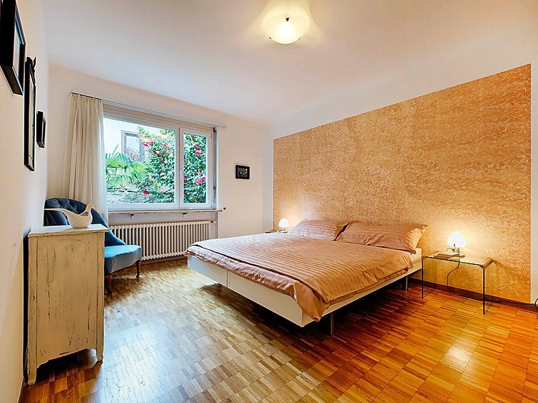 Ascona: Casa moderna. Por encima Ascona, en la localidad, a 400 m del centro, en el distrito Lago Maggiore, lugar tranquilo en una pendiente, a 400 m de un lago. En el inmueble: ascensor, calefacción central. Servicio a domicilio de panecillos. Aparcamiento (número limitado, extra) en el mismo terreno, garaje comunitario (extra). Tienda, restaurante 400 m, estación de tren "Locarno-Muralto" 4 km, zona para bañarse 1 km. Campo de golf (18 hoyos) 1 km, tenis 1 km. A tener en cuenta: adecuado para familias, adecuado para la tercera edad. Se pueden reservar alojamientos adicionales. Acceso al parking por una escalera empinada, a 5 minutos. Otros parkings públicos en el centro. Mini-golf a 1 km.
