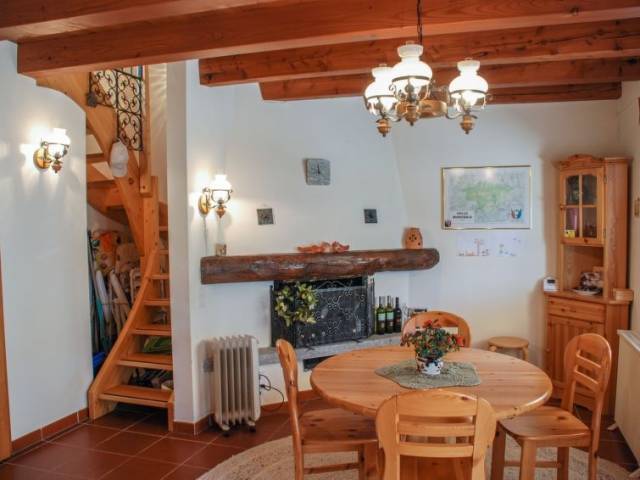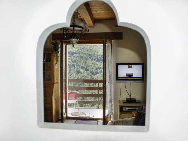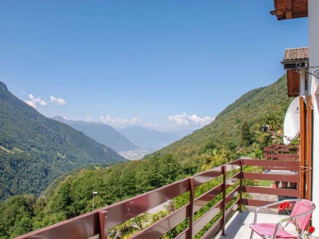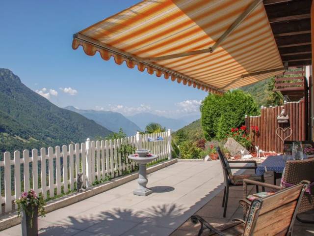"Ronchetto Melera", casa 3 estancias 75 m2 en 3 plantas. Vivienda adecuada para 2 adultos + 2 niños. Espacioso, parcialmente abuhardillada, con mobiliario bonito y rústico: salón-dormitorio abierto con 1 sofá-cama (160 cm, 190 cm de longitud), chiminea nórdica y TV satélite (pantalla plana), radio, CD y calefacción eléctrica. Salida al balcón. En planta inferior: grande cocina-comedor (horno, 4 placas de vitrocerámica, tostadora, hervidor de agua eléctrico, cafetera eléctrica, Cápsulas de café (Nespresso) extra, horno Raclette, set de Fondue (queso)) con chimenea (sólo con función decorativa), mesa de comedor. Salida a la terraza, pérgola, a la terraza-jardín. Ducha/WC. Calefacción eléctrica. Planta superior: (escalera de caracol) 1 dorm. doble con 1 cama doble (2 x 90 cm, 200 cm de longitud), WC separado. Orientación sur, terraza grande parcialmente cubierta, orientación sur. Muebles de terraza, muebles de balcón, tumbonas. Vista panorámica espléndida a las montañas, al valle y al paisaje. El alojamiento dispone de: plancha, trona, cuna hasta 2 años (extra), secador de pelo. Internet (Wifi, gratis). A tener en cuenta: adecuado para familias. Casa para no fumadores. NL-00001847