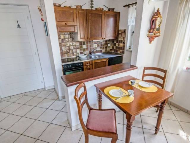 "Apt. A8" estudio 68 m2 en el 1° piso. Salón-comedor con TV y radio. Rincón-dormitorio con 2 camas. Rincón-cocina (horno, 4 placas de vitrocerámica, cafetera eléctrica, Cápsulas de café (Dolce Gusto (Coop)) extra). Baño/WC. Balcón. Muebles de terraza. Vista al lago. Permitido máximo 1 mascota / perro. NL-00003543
