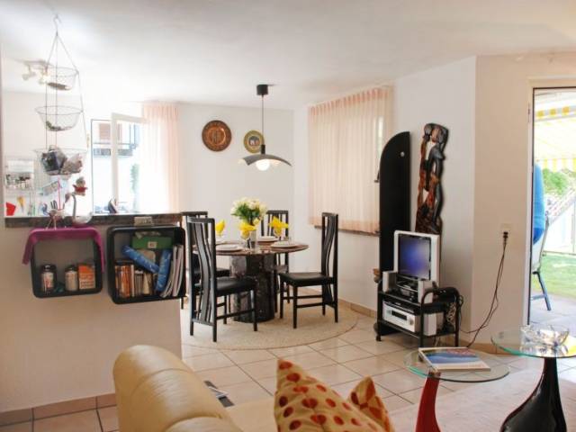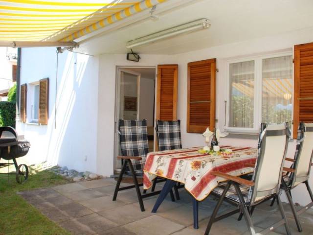 "Appartamento Giardinetto", apartamento de 2 estancias orientación suroeste. Vivienda adecuada para 2 adultos + 2 niños. Luminoso, con mobiliario confortable y agradable: salón-comedor abierto con 1 sofá-cama (140 cm, 200 cm de longitud), mesa de comedor y TV satélite (pantalla plana). Salida al jardín, a la terraza-jardín. 1 dorm. doble con 1 cama doble (1 x 160 cm, 200 cm de longitud). Cocina abierta (horno, lavavajillas, 4 placas de vitrocerámica, cafetera eléctrica, Cápsulas de café (Nespresso) extra). Salida al jardín, pérgola. Ducha/WC. Calefacción. Terraza-jardín parcialmente cubierta, jardín, césped. Muebles de terraza, barbacoa (portátil), tumbonas (2). Vista parcial al lago, a las montañas y al paisaje. El alojamiento dispone de: trona, cuna hasta 2 años (extra), secador de pelo. Internet (Wifi). A tener en cuenta: apartamento para no fumadores. 1 mascota / perro. TV solamente DE, CH. Extintores. NL-00004617