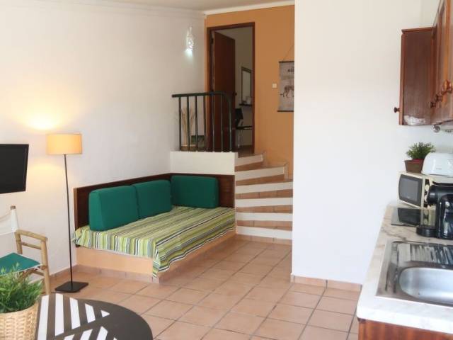 "Quinta da Murteira (FUZ106)", bungalow 2 estancias 31 m2. Con mobiliario funcional y rústico: salón-dormitorio con 1 sofá-cama (98 cm, 185 cm de longitud), mesa de comedor y TV satélite. 1 dorm. con 2 camas, calefacción eléctrica y aire acondicionado. Cocina abierta (4 placas de vitrocerámica, tostadora, microondas, cafetera eléctrica). Media bañera/WC. Terraza. Muebles de terraza, tumbonas (2). El alojamiento dispone de: trona, cuna. Internet (Wifi, gratis). A tener en cuenta: casa para no fumadores. Detector de humo, extintores. 2049/AL