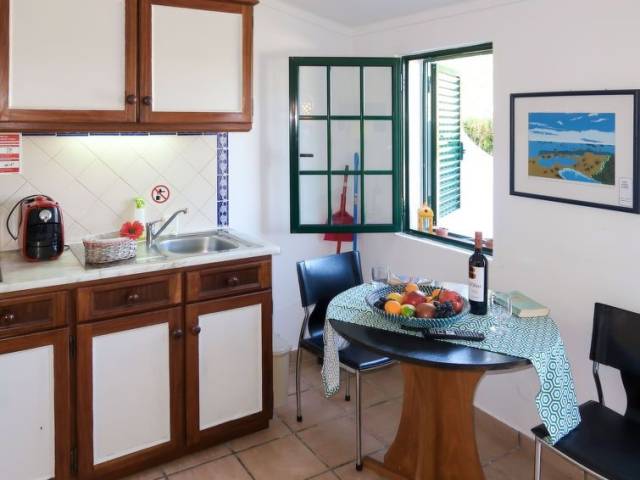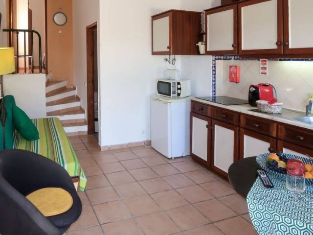 "Quinta da Murteira (FUZ103)", bungalow 2 estancias 26 m2. Con mobiliario funcional y rústico: salón-dormitorio con 1 sofá-cama (98 cm, 185 cm de longitud), TV satélite. 1 dorm. con 2 camas. Cocina abierta (4 placas de vitrocerámica, tostadora, microondas, cafetera eléctrica) con mesa de comedor. Media bañera/WC. Calefacción eléctrica, aire acondicionado. Calefacción no en todas las estaciones. Terraza. Muebles de terraza, tumbonas (2). El alojamiento dispone de: mosquitera, trona, cuna. Internet (Wifi, gratis). A tener en cuenta: apartamento para no fumadores. Detector de humo, extintores. 2049/AL