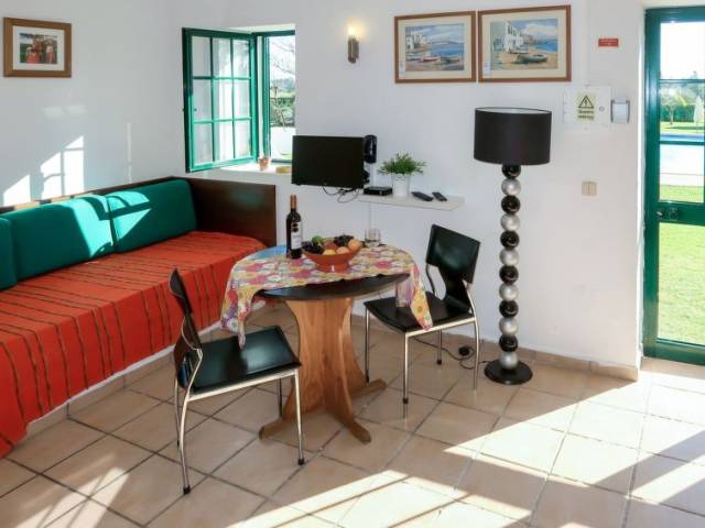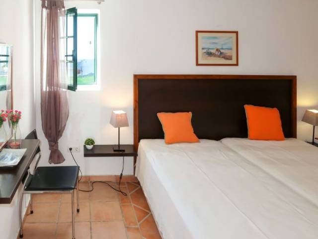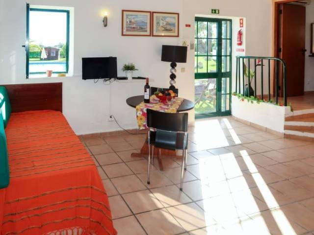 "Quinta da Murteira (FUZ102)", bungalow 2 estancias 35 m2. Con mobiliario funcional y rústico: salón-dormitorio con 1 sofá-cama (98 cm, 185 cm de longitud), TV satélite. 1 dorm. con 2 camas. Cocina abierta (4 placas de vitrocerámica, tostadora, microondas, cafetera eléctrica) con mesa de comedor. Media bañera/WC. Calefacción eléctrica, aire acondicionado. Calefacción no en todas las estaciones. Terraza-jardín. Muebles de terraza, tumbonas (2). Vista a la piscina. El alojamiento dispone de: mosquitera, trona, cuna. Internet (Wifi, gratis). A tener en cuenta: apartamento para no fumadores. Detector de humo, extintores. 2049/AL