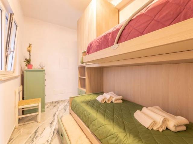 "Daunia", apartamento de 3 estancias 90 m2, en la planta baja. Con mobiliario confortable y agradable: salón-dormitorio con 1 sofá-cama doble, mesa de comedor y TV. Salida a la terraza. 1 dorm. doble. 1 dorm. con 1 x 2 literas. Rincón-cocina (horno, lavavajillas, 4 fuegos, microondas, congelador). Ducha/bidet/WC. Calefacción, aire acondicionado. Calefacción disponible desde el 01.11. al 31.03. Terraza cubierta. Muebles de terraza. El alojamiento dispone de: lavadora, plancha, mosquitera, secador de pelo. Internet (Wifi, gratis). Plaza de aparcamiento (1 coche). BR07401291000002062