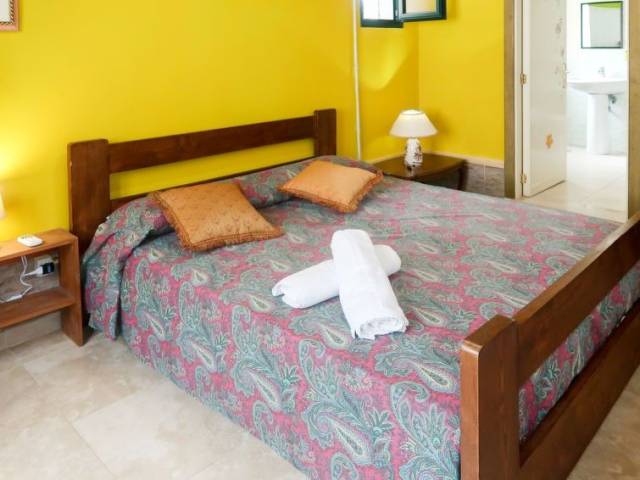 Casa 4 estancias 110 m2. Con mobiliario funcional y rústico: salón-comedor con mesa de comedor, TV, aire acondicionado y bomba de calor, caliente. Salida al jardín. 1 dorm. con 1 cama de matrimonio (160 cm). 1 dorm. con 2 camas y chimenea. 1 dorm. doble con ducha/WC, aire acondicionado y bomba de calor, caliente. Cocina abierta (horno, 5 fuegos, tostadora, congelador, horno para pizza). Ducha/WC. Terraza. Muebles de terraza, barbacoa, tumbonas (6). El alojamiento dispone de: lavadora, cuna. Internet (Wifi, gratis). A tener en cuenta: un dormitorio doble está fuera del apartamento. Permitido máximo 1 mascota pequeña / perro. CIS: LE07504191000008039