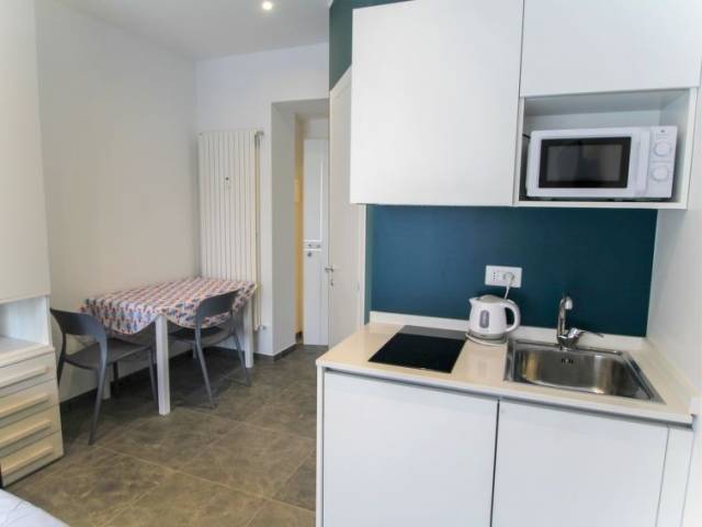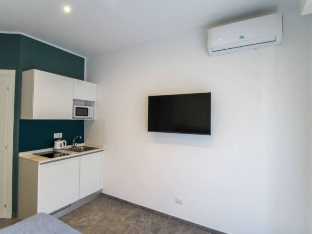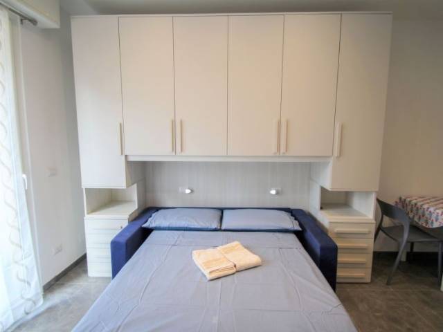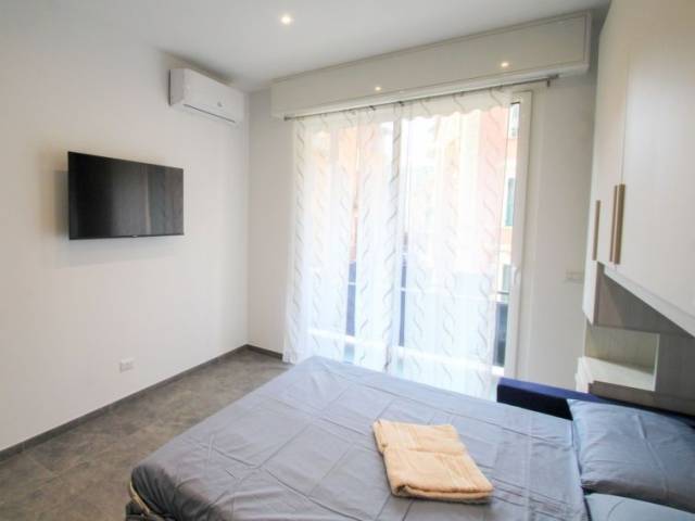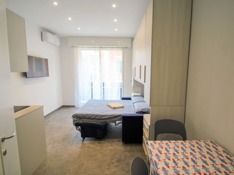 "Blu" estudio 22 m2 en el 2° piso. Completamente reformado en 2023, con mobiliario funcional y moderno: salón-dormitorio con 1 sofá-cama doble (160 cm), TV y persianas eléctricas. Pequeno rincón-cocina (2 Placas de inducción, hervidor de agua eléctrico, microondas, cafetera eléctrica). Ducha/bidet/WC. Aire acondicionado, aire caliente. Balcón pequeño. El alojamiento dispone de: secador de pelo. Internet (Wifi, gratis). A tener en cuenta: nevera sin congelador. Detector de humo. CITRA:010046-LT-1851