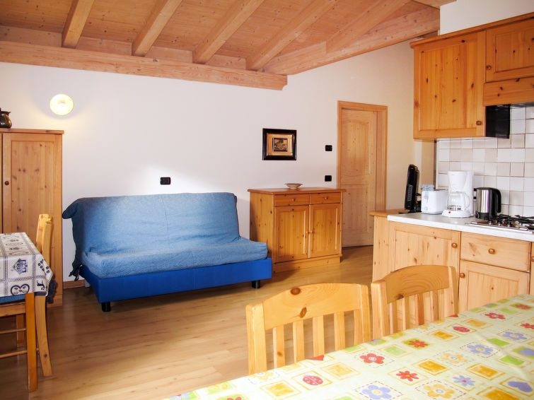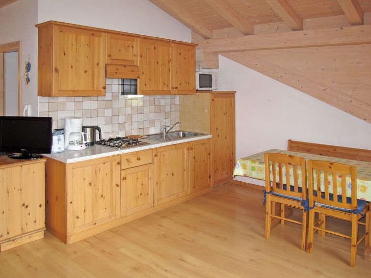 "Bernardetta", apartamento de 3 estancias 60 m2 en el 2° piso. Luminoso, con mobiliario agradable y con mucha madera: salón-comedor con mesa de comedor, rincón-comedor y TV satélite. Salida al balcón. 1 dorm. doble con ducha/bidet/WC. Salida al balcón. 1 dorm., abuhardillado con 2 camas. Salida al balcón. Cocina abierta (lavavajillas, 4 fuegos, tostadora, hervidor de agua eléctrico, microondas, cafetera eléctrica). Ducha/bidet/WC. Calefacción. Muebles de balcón. Vista bonita a las montañas. El alojamiento dispone de: lavadora, cuna hasta 2 años. Internet (Wifi). A tener en cuenta: apartamento para no fumadores. 1 mascota / perro. CIPAT 022250-AT-066487