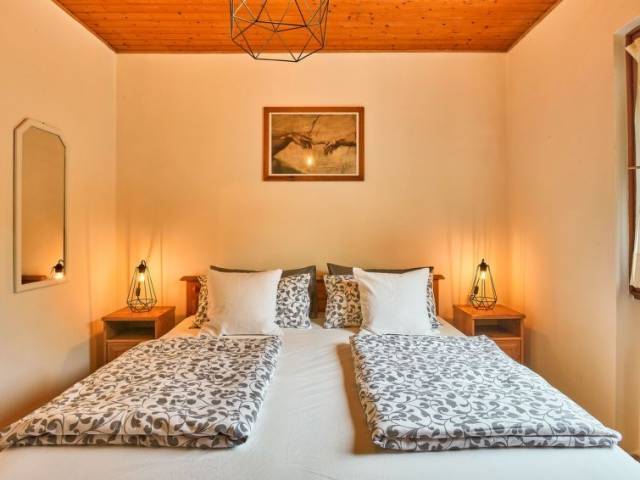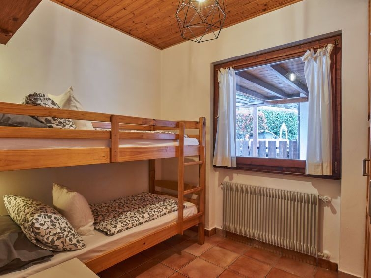 Casa 3 estancias 55 m2, en planta baja elevada. Con mobiliario rústico: salón-dormitorio con 1 sofá-cama (140 cm), mesa de comedor y TV satélite. Salida a la terraza. 1 dorm. doble. 1 dorm. con 1 x 2 literas. Pequeña cocina (4 Placas de inducción, tostadora, hervidor de agua eléctrico, cafetera eléctrica). Ducha/bidet/WC. Calefacción gasóleo (extra). Terraza cubierta. Muebles de terraza, tumbonas (2). Vista lejana al lago. El alojamiento dispone de: Internet (Wifi, gratis). Plaza de aparcamiento (cubierto, vallada, 1 coche) junto a la casa. A tener en cuenta: apartamento para no fumadores. No hay costos locales adicionales, excepto la tasa local de turismo. CIR:M0230450258