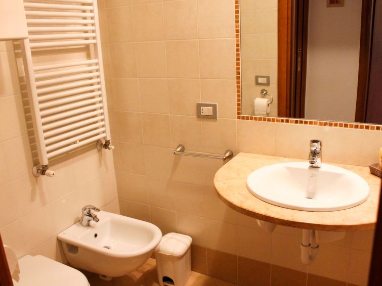 Residencia "La Madonnina", de 2 plantas. 8 apartamentos en la propiedad. A 1.5 km del centro de Lazise, en las afueras de la localidad, area residencial (villas), a 2 km de un lago, a 2 km de la playa, en una calle sin salida. Comunitario: terreno (vallado), piscina (10 x 5 m, 140 cm de profundidad, Disponible por temporada: 15.May. - 15.Sep.). Ducha exterior. En el inmueble: sala para guardar bicicleta. Garaje individual n. 1 junto a la casa. Tienda, supermercado 800 m, zona peatonal 1.5 km, estación de tren "Peschiera del Garda" 9 km, playa de gravilla "Lazise" 2 km. Atracciones en los alrededores: Garda 10 km, Verona 25 km, Gardaland 8 km. A tener en cuenta: equipamiento para bebés a demanda (incluido). Apartamento de 3 estancias 70 m2 en el 1° piso. Luminoso, con mobiliario confortable y bonito: salón-comedor con TV satélite. Salida al balcón. 1 dorm. doble. 1 dorm. con 1 cama y 1 x 2 literas. Salida al balcón. Cocina abierta (horno, 4 fuegos, tostadora, cafetera eléctrica). Ducha/bidet/WC. Calefacción de gas, aire acondicionado (extra). 2 balcones. Muebles de balcón, tumbonas (2). El alojamiento dispone de: lavadora, secadora, plancha. Internet (Wifi, gratis). Garaje en el mismo terreno (1 coche). A tener en cuenta: nevera sin congelador, apartamento para no fumadores. M0230430392