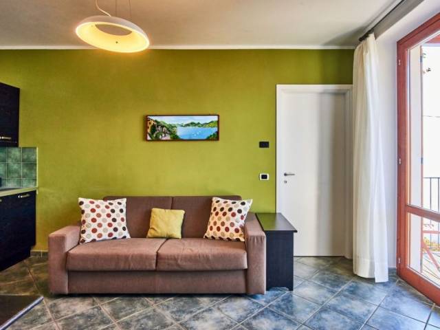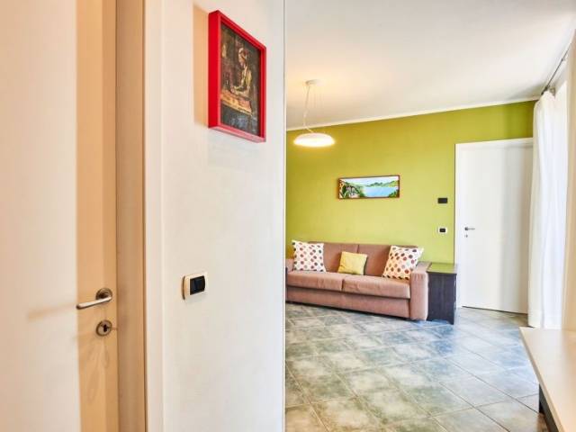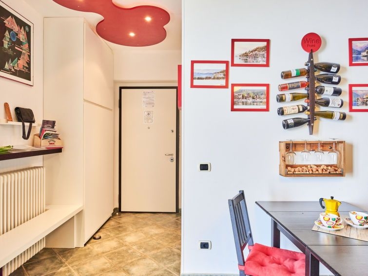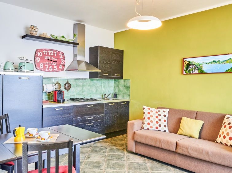 "703", apartamento de 2 estancias 50 m2 en el 1° piso. Luminoso, con mobiliario confortable: salón-dormitorio abierto con 1 sofá-cama doble, mesa de comedor y TV satélite. Salida al balcón. 1 dorm. doble. Cocina abierta (4 fuegos, tostadora, microondas, cafetera eléctrica). Salida al jardín, al balcón. Ducha/bidet/WC. Calefacción de gas. Balcón pequeño, terraza grande. Muebles de terraza, muebles de balcón, barbacoa (portátil), tumbonas (2). Vista panorámica espléndida al lago y a las montañas. El alojamiento dispone de: trona, cuna hasta 2 años. Internet (Wifi). Plaza de aparcamiento (1 coche). A tener en cuenta: apartamento para no fumadores. Entrada privada. CIR: 097008-CIM-00003