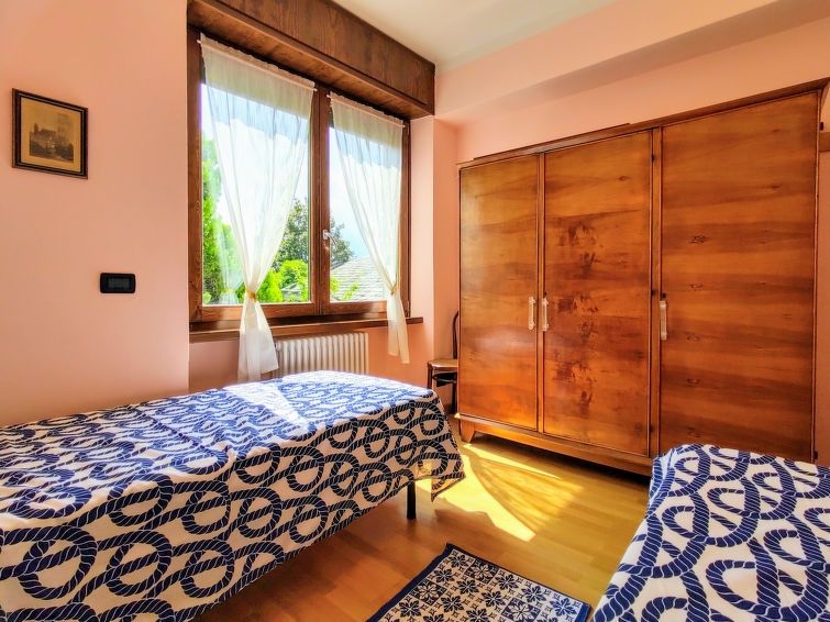 "Bruna", apartamento de 3 estancias 85 m2 en el 1° piso. Salón-comedor con puerta corredera con chimenea (sólo con función decorativa), TV. Salida al balcón. 1 dorm. con 2 camas. 1 dorm. doble. Cocina abierta (5 fogones, horno, lavavajillas, tostadora, microondas, cafetera eléctrica). Salida al balcón. Ducha/WC. Calefacción de gas. Balcón pequeño, terraza-jardín. Muebles de balcón, tumbonas (2). Vista muy bonita al lago y a las montañas. El alojamiento dispone de: lavadora, cuna hasta 2 años. Internet (Wifi, gratis). Garaje (extra) (1 coche) a 150 m. A tener en cuenta: permitido máximo 1 mascota pequeña / perro. Entrada privada. CIR: 013107-CNI-00059