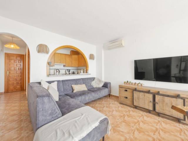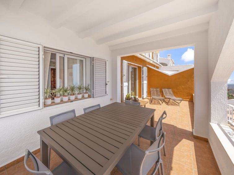 "Sol del Sur", apartamento de 3 estancias 69 m2. Luminoso, con mobiliario funcional: salón-comedor con TV satélite, aire acondicionado y bomba de calor, caliente. Salida a la terraza. 1 dorm. con 1 cama de matrimonio (160 cm, 200 cm de longitud), aire acondicionado y bomba de calor, caliente. 1 dorm. con 1 cama de matrimonio (160 cm, 200 cm de longitud). Pequeña cocina abierta (horno, 4 placas de vitrocerámica, microondas, congelador, cafetera eléctrica). Ducha/WC. Terraza grande parcialmente cubierta. Muebles de terraza. Vista panorámica espléndida al mar y al paisaje. El alojamiento dispone de: lavadora, plancha, secador de pelo. Internet (Wifi, gratis). A tener en cuenta: apartamento para no fumadores. R000000001