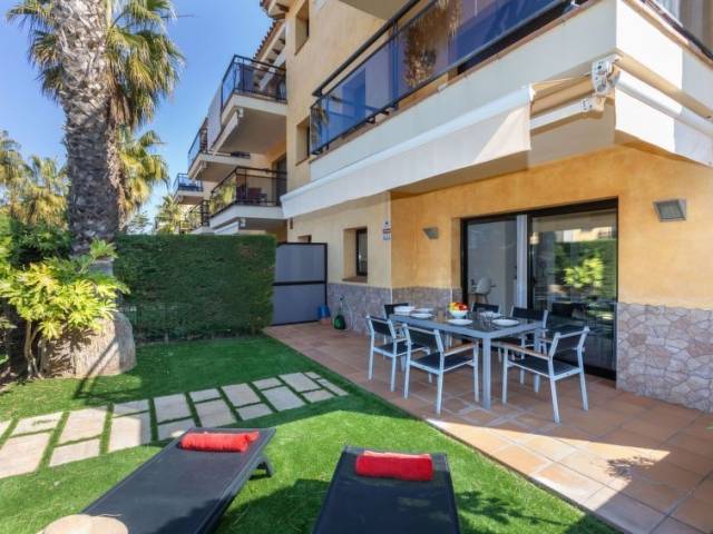 Port Verona a 2 km de Centro Platja D'aro: Casa de apartamentos "Port Verona". A 500 m del mar, a 500 m de la playa. Comunitario: jardín con césped, piscina (18 x 6 m, 90 - 180 cm de profundidad, Disponible por temporada: 01.Ene. - 31.Dic.). Ducha exterior, aparcamiento, garaje comunitario. Supermercado, restaurante 200 m, playa de arena 500 m. Puerto deportivo 100 m, campo de golf 3 km, tenis 3 km, centro ecuestre 10 km. Atracciones en los alrededores: Parque Acuatico 3 km. El propietario no acepta grupos. El propietario no acepta grupos de adolescentes/jóvenes. Vecindario muy sensible a ruidos. Se ruega respetar la tranquilidad y normas de buen comportamiento. Apartamento de 4 estancias 69 m2, en la planta baja. Con mobiliario funcional: salón-comedor con TV digital. Salida a la terraza-jardín. 1 dorm. con 1 cama de matrimonio (150 cm, 190 cm de longitud), ducha/WC. 1 dorm. con 1 cama-nido (2 x 90 cm, 190 cm de longitud). 1 dorm. con 2 camas (90 cm, 190 cm de longitud). Cocina abierta (horno, lavavajillas, 3 placas de vitrocerámica, tostadora, hervidor de agua eléctrico, microondas). Ducha/WC. Ningún tipo de calefacción. Terraza-jardín 28 m2. El alojamiento dispone de: lavadora, plancha, trona, cuna, secador de pelo. Internet (Wifi, gratis). Plaza de aparcamiento n. 4. A tener en cuenta: TV solamente ES. HUTG-061218