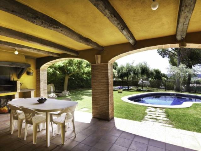 Mas Ambros a 2 km de Calonge: Casa "Alicia", de 2 plantas. Lugar soleado, zona con poco tráfico, a 5 km del mar. Privado: jardín natural (vallada), piscina en forma de riñon (8 x 4 m, 110 - 190 cm de profundidad, Disponible por temporada: 01.May. - 31.Oct.) con escalera interior. Aparcamiento (para 2 coches, cubierto). Tienda 2 m, supermercado, bar 1 m, playa de arena "Sant Antoni de Calonge" 5 km. Puerto deportivo 7 km, campo de golf (12 hoyos), centro ecuestre 7 km. Atracciones en los alrededores: Waterpark Aquadiver 7 km. A tener en cuenta: coche recomendable. El propietario no acepta grupos. El propietario no acepta grupos de adolescentes/jóvenes. Vecindario muy sensible a ruidos. Se ruega respetar la tranquilidad y normas de buen comportamiento.