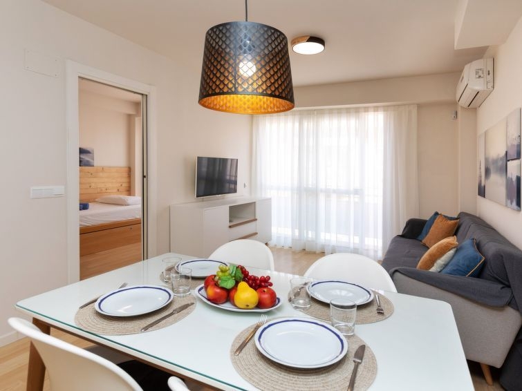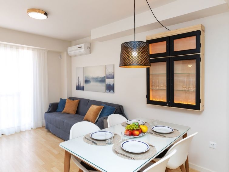Casa de apartamentos "Industria", de 4 plantas. En la localidad, a 300 m del mar. En el inmueble: ascensor. Supermercado, restaurante 300 m, bar 100 m, parada de autobús 300 m. Puerto deportivo 3 km, campo de golf 7 km. Atracciones en los alrededores: Parque Acuatico "Aguadiver" 11 km. Vecindario muy sensible a ruidos. Se ruega respetar la tranquilidad y normas de buen comportamiento. "Industria", apartamento en dos niveles 3 estancias 55 m2 en el 2° piso. Con mobiliario funcional: salón-comedor con TV digital. Salida al balcón. 1 dorm. con 2 camas (90 cm, 190 cm de longitud). Salida al balcón. Cocina (horno, lavavajillas, 3 placas de vitrocerámica, tostadora, hervidor de agua eléctrico, congelador). Ducha/WC. Aire acondicionado. Ningún tipo de calefacción. Planta superior: 1 dorm. con 1 cama de matrimonio (150 cm, 200 cm de longitud), ducha/WC y aire acondicionado. Salida a la terraza. Balcón pequeño, terraza. Muebles de terraza. El alojamiento dispone de: lavadora, plancha, trona, cuna, secador de pelo. Internet (Wifi, gratis). Plaza de aparcamiento n. 89. A tener en cuenta: TV solamente ES. HUTG-068773