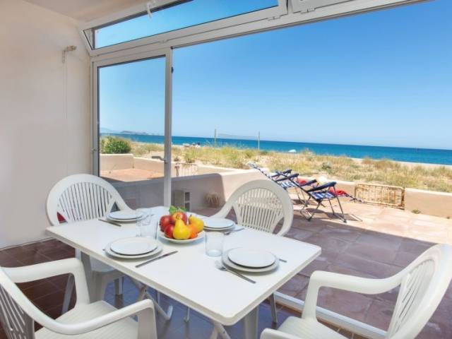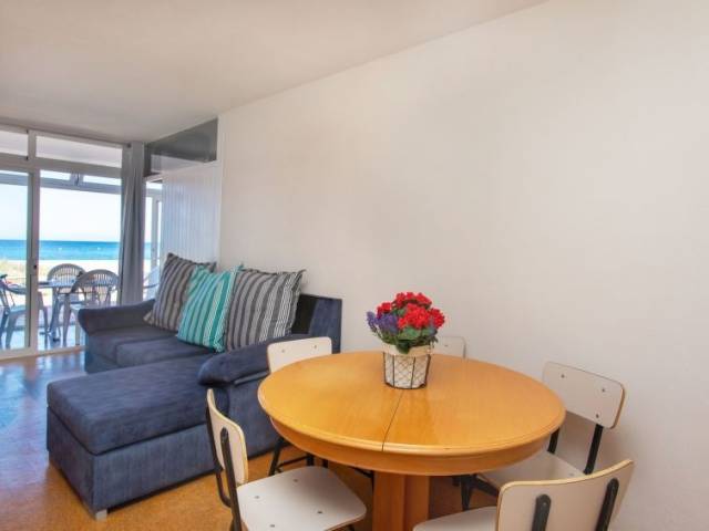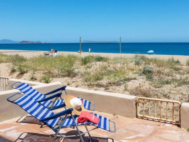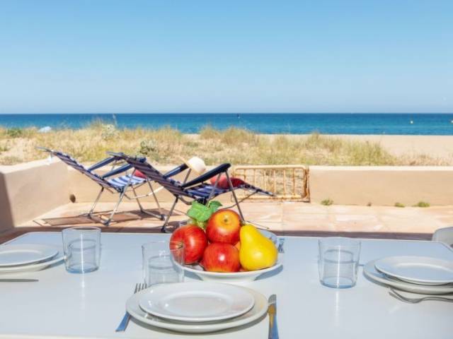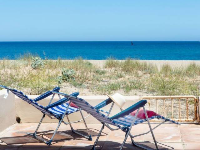 Platja del Raco a 5 km de Pals: Casa de apartamentos "Paraiso", de 3 plantas. A 20 m de la playa, acceso directo a la playa. Posibilidad de aparcamiento en la calle extra. Tienda, tienda de comestibles 500 m, supermercado 700 m, restaurante, café 300 m, playa de arena "El racó" 30 m. Campo de golf (4 hoyos). El propietario no acepta grupos. El propietario no acepta grupos de adolescentes/jóvenes. Vecindario muy sensible a ruidos. Se ruega respetar la tranquilidad y normas de buen comportamiento. "Paradise beach", apartamento de 3 estancias 75 m2, en la planta baja. Con mobiliario funcional: salón-comedor con TV digital. Salida a la terraza. 1 dorm. con 1 cama de matrimonio (160 cm, 190 cm de longitud). 1 dorm. con 2 camas (90 cm, 190 cm de longitud). Cocina (lavavajillas, 4 placas de vitrocerámica, tostadora, hervidor de agua eléctrico, microondas, congelador, cafetera eléctrica, microondas/grill). Ducha/WC, WC separado. Ningún tipo de calefacción. Muebles de terraza, tumbonas (2). Vista panorámica espléndida al mar. El alojamiento dispone de: lavadora, plancha, trona, cuna, secador de pelo. Internet (Wifi, gratis). Plaza de aparcamiento n. 7 junto a la casa. A tener en cuenta: TV solamente ES. HUTG-013125