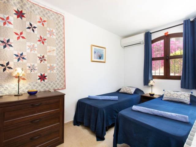 "Cecilie", casa pareada 3 estancias 90 m2. Vivienda adecuada para 2 adultos + 2 niños. Espacioso y luminoso, con mobiliario confortable: salón-comedor con TV cable, canales internacionales, equipo de música, aire acondicionado y bomba de calor, caliente. Salida pérgola, a la terraza-jardín. 1 dorm. con 2 camas (80 cm, 200 cm de longitud), aire acondicionado. 1 dorm. con 1 cama de matrimonio (180 cm, 200 cm de longitud), aire acondicionado. Cocina abierta (horno, lavavajillas, 4 fuegos, tostadora, hervidor de agua eléctrico, microondas, congelador, cafetera eléctrica). 2 baño/WC. Terraza grande, jardín grande, césped. Muebles de terraza, tumbonas (2). Vista bonita al mar y a la localidad. El alojamiento dispone de: plancha, mosquitera, secador de pelo. Internet (Wifi, gratis). Adecuado para familias. VFT/MA/66368