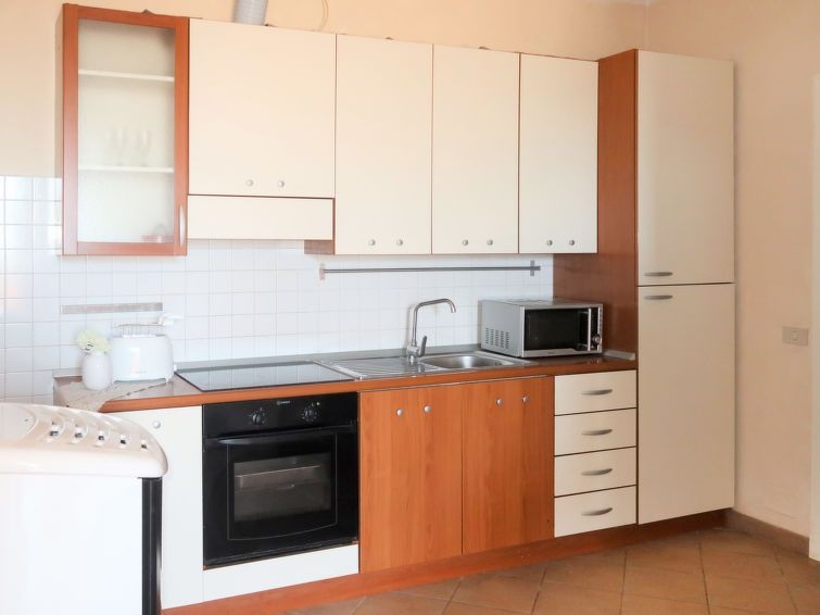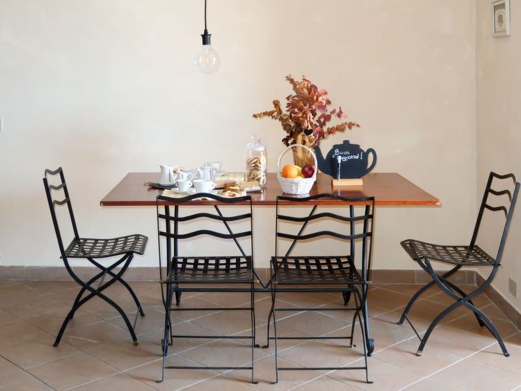"Zenzero e Cannella", apartamento de 3 estancias 85 m2, en la planta baja. Con mobiliario moderno y de estilo: salón-comedor con mesa de comedor, TV y estufa. Salida a la terraza. 1 dorm. con 1 cama de matrimonio (160 cm). 1 dorm. con 3 camas. Cocina abierta (horno, 4 Placas de inducción, tostadora, hervidor de agua eléctrico, microondas, congelador). Ducha/WC. Terraza 25 m2. Muebles de terraza, barbacoa (portátil), tumbonas, trastero. El alojamiento dispone de: lavadora, trona, cuna. A tener en cuenta: casa para no fumadores. 1 mascota / perro. CITRA: 008028-LT-0024